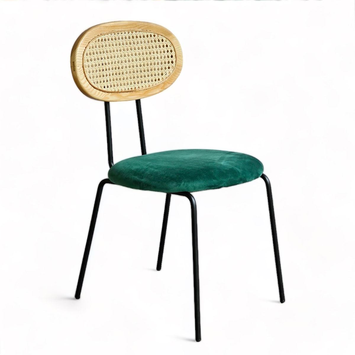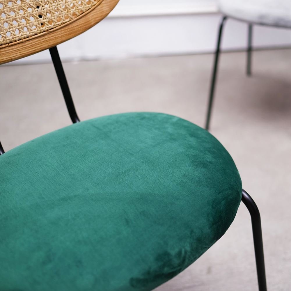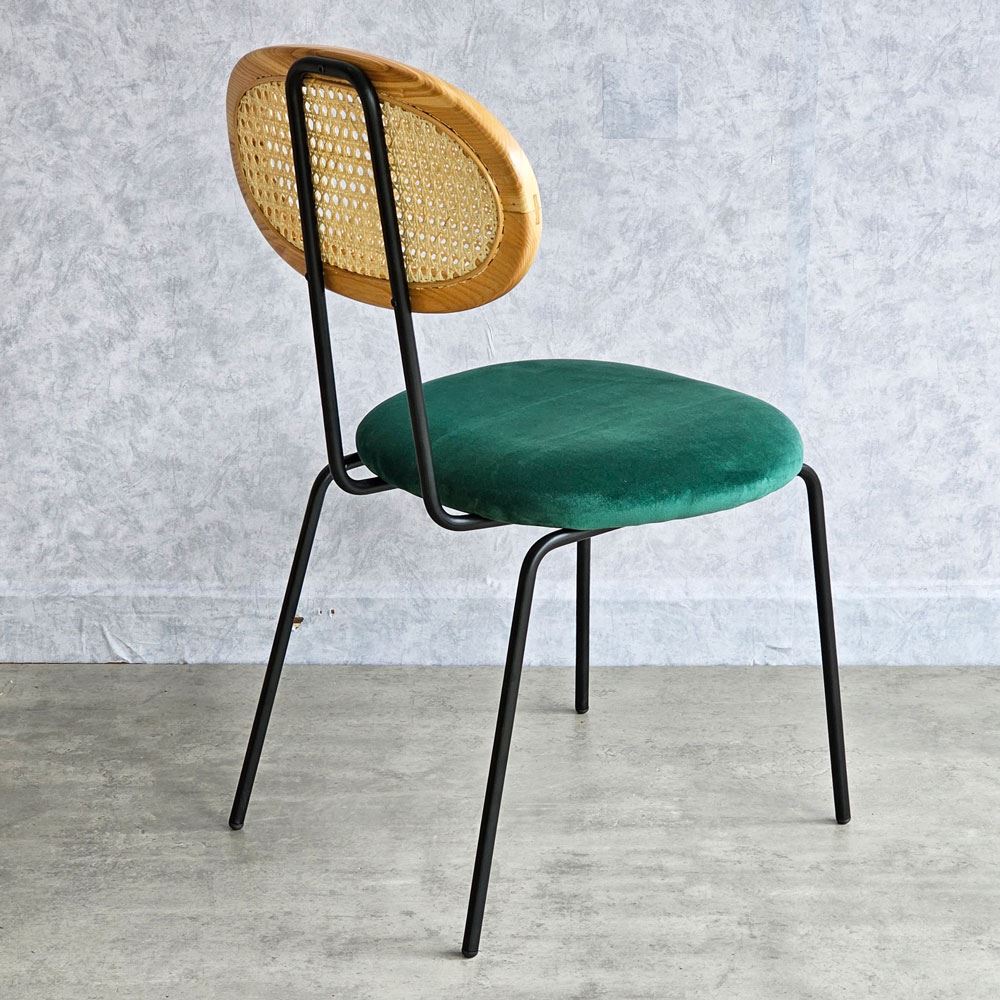 Ghế tựa lưng nệm nhung GAK198 có thiết kế đẹp mắt với phần lưng tựa bằng gỗ mây, nệm nhung êm ái mang đến sự thoải mái khi ngồi, khung chân sắt có khả năng chịu lực tốt, bề mặt sắt sơn tĩnh điện chống rỉ sét. Ghế GAK198 là sự kết hợp hài hoà của các chất liệu khác nhau, kiểu dáng hiện đại được sử dụng trong nhiều không gian gia đình như ghế bàn ăn, ghế làm việc,...hay tại không gian quán cafe, nhà hàng