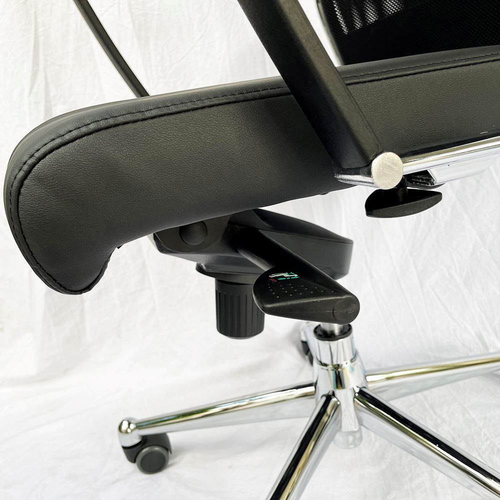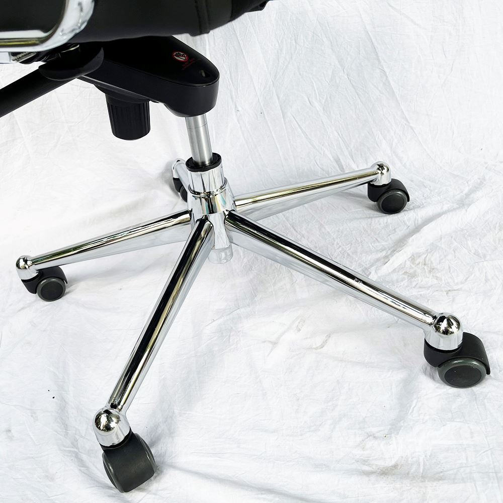 Ghế chân xoay có tựa đầu GSP94SJ thuộc dòng sản phẩm ghế văn phòng cao cấp tại HomeOffice, ghế sử dụng các linh kiện cao cấp ( bộ điều khiển, phuộc, chân xoay, bánh xe...) nên trọng lượng ghế khá lớn, tạo sự chắc chắn, vững chãi khi ngồi. Lưng ghế là khung sắt mạ crome bền, đẹp. Nệm dày, đàn hồi cao êm ái cùng lưng lưới thoáng khí, chống nóng ẩm mang lại sự thoải mái khi làm việc trong thời gian dài. Tiếp đến là vẻ đẹp từ chân được làm từ hợp kim nhôm cao cấp sáng loáng đẹp mắt. Ghế được trang bị bộ điều khiển với các tính năng nâng hạ chiều cao, ngả lưng tuỳ vị trí điều chỉnh phù hợp với người ngồi giúp bạn có được tư thế làm việc thoải mái nhất, nâng cao hiệu suất công việc và đặc biệt bảo vệ sức khoẻ người dùng, tránh bị đau lưng, mệt mỏi và không bị thoái hóa cột sống, đau lưng, đau đốt sống cổ…những căn bệnh dễ gặp khi ngồi làm việc trong thời gian dài.