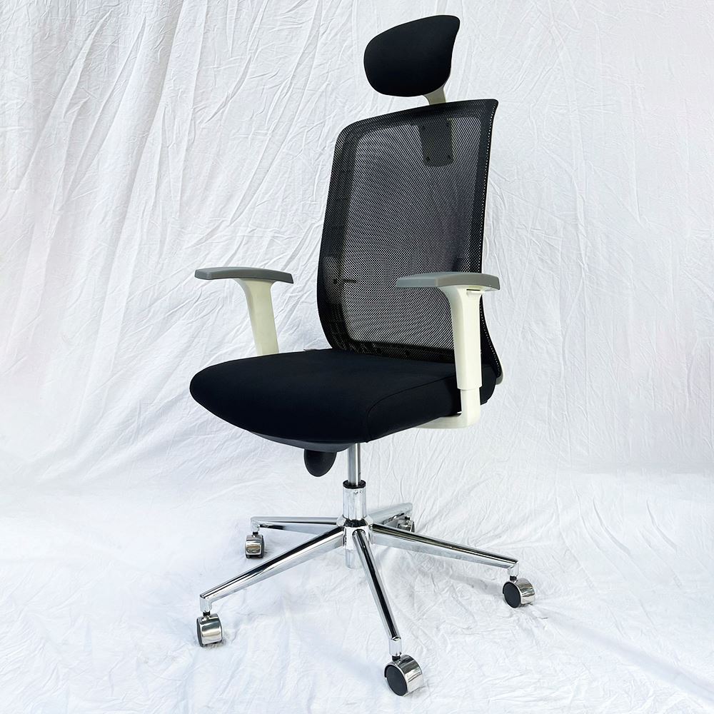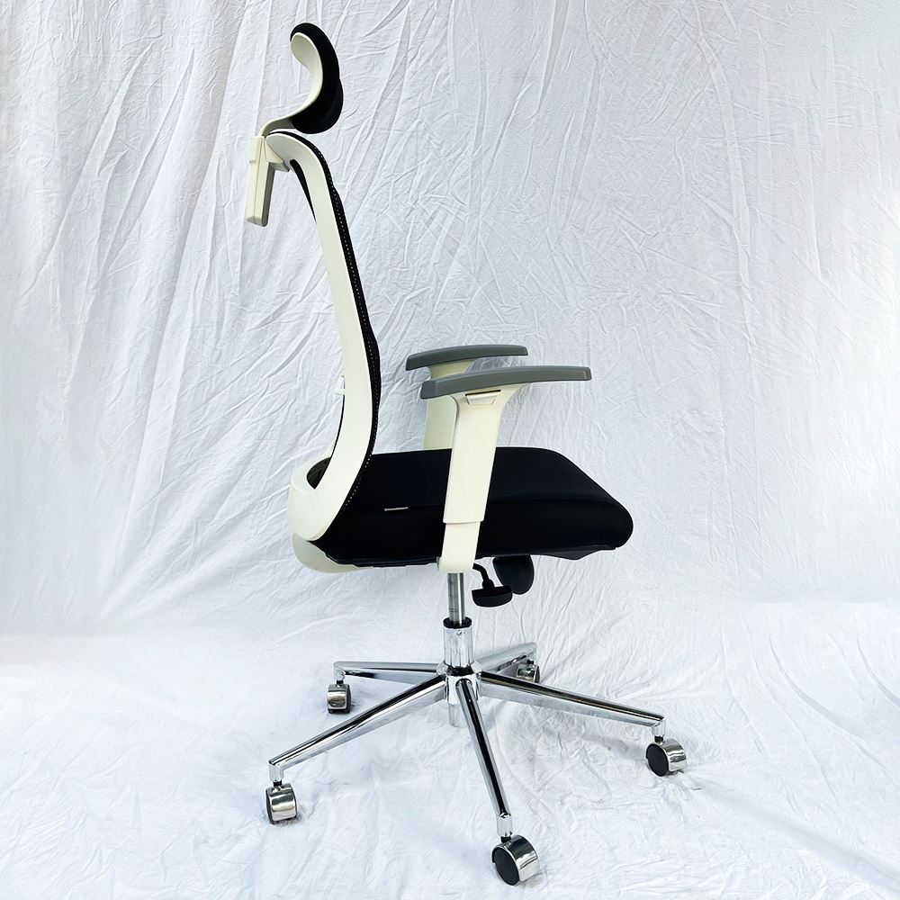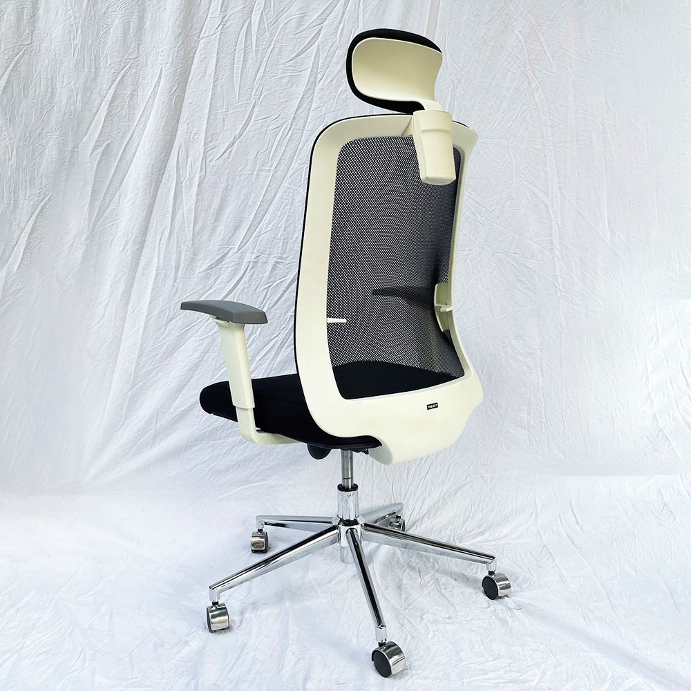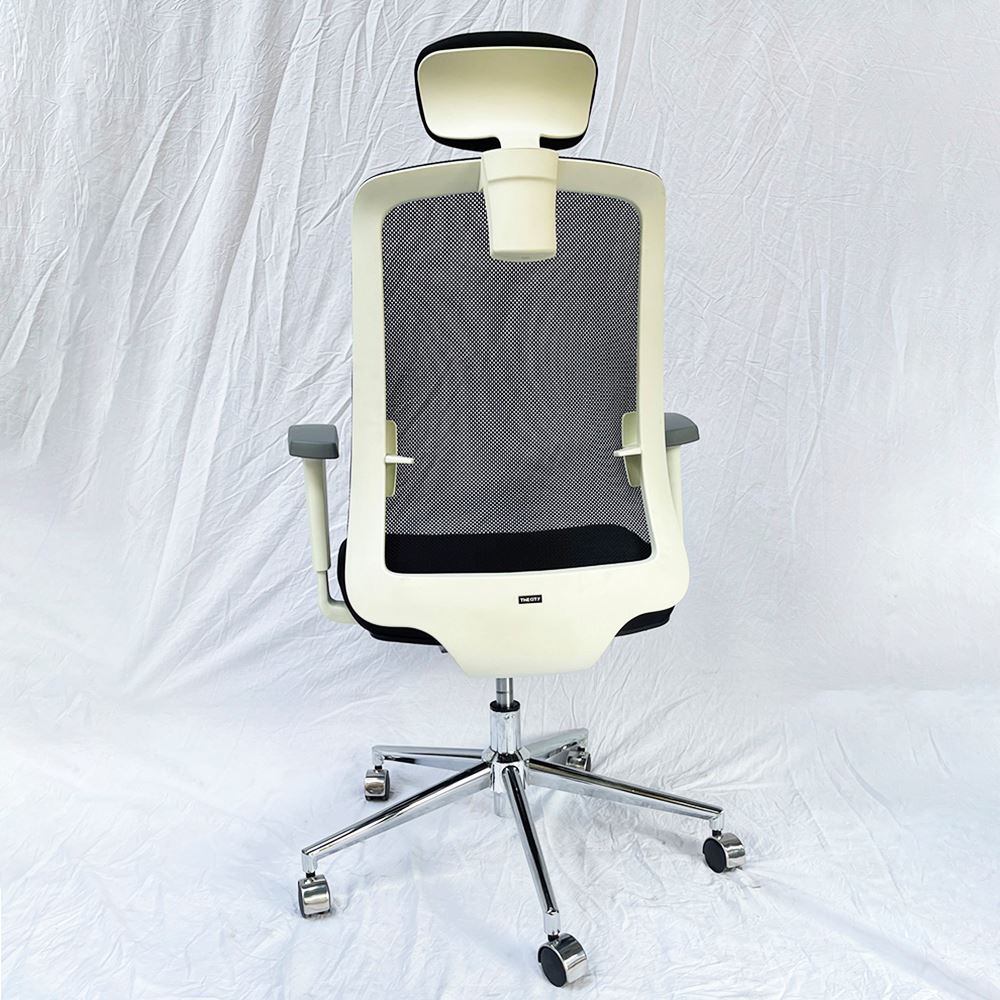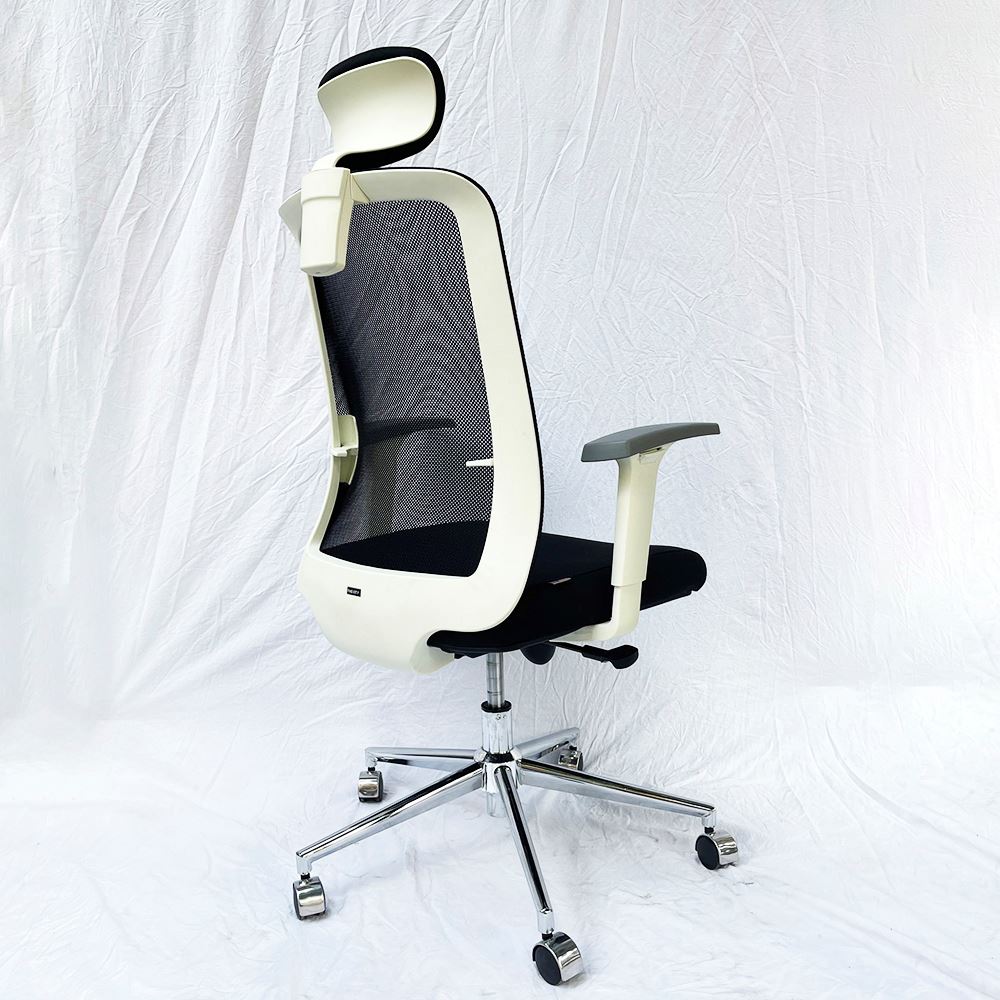 Khung lưng viền và tay vịn màu trắng bắt mắt tạo điểm nhấn cho không gian làm việc