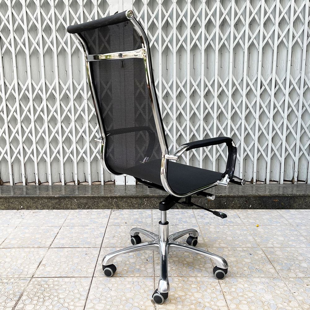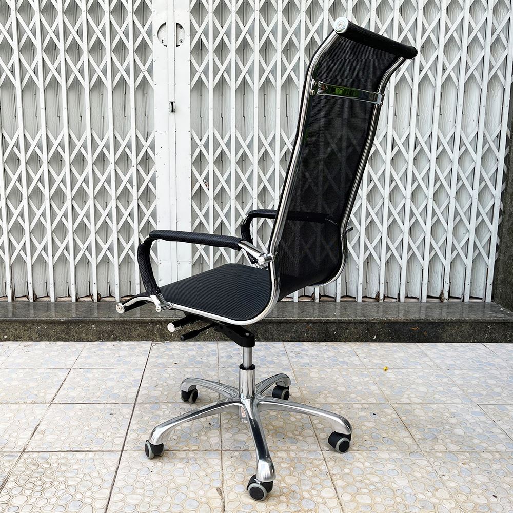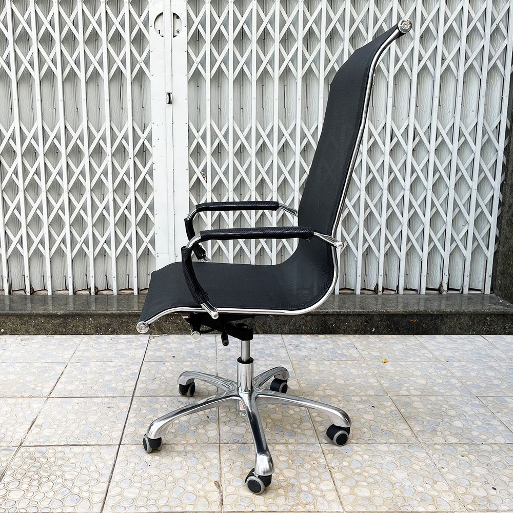 Ghế văn phòng chân xoay lưng cao cong MFM04 sở hữu một thiết kế cực kì ấn tượng và tinh tế. Phần lưng ghế có cấu trúc uốn cong dựa theo tiêu chuẩn của Công Thái Học (Egonomic), giúp bạn bảo vệ phần đốt sống lưng tốt hơn, luôn giữ cho bạn ngồi đúng tư thế khi làm việc và tránh bị những dị tật sau này khi phải ngồi lâu. Khung ghế được làm bằng khung thép chịu lực tốt, được mạ crom sáng bóng, chống gỉ có độ bền bỉ và thời gian sử dụng lâu dài. Toàn bộ lưng ghế và nệm ngồi được bọc lưới thoáng khí giúp bạn làm việc trong thời gian dài vẫn luôn thoáng mát và dễ chịu.