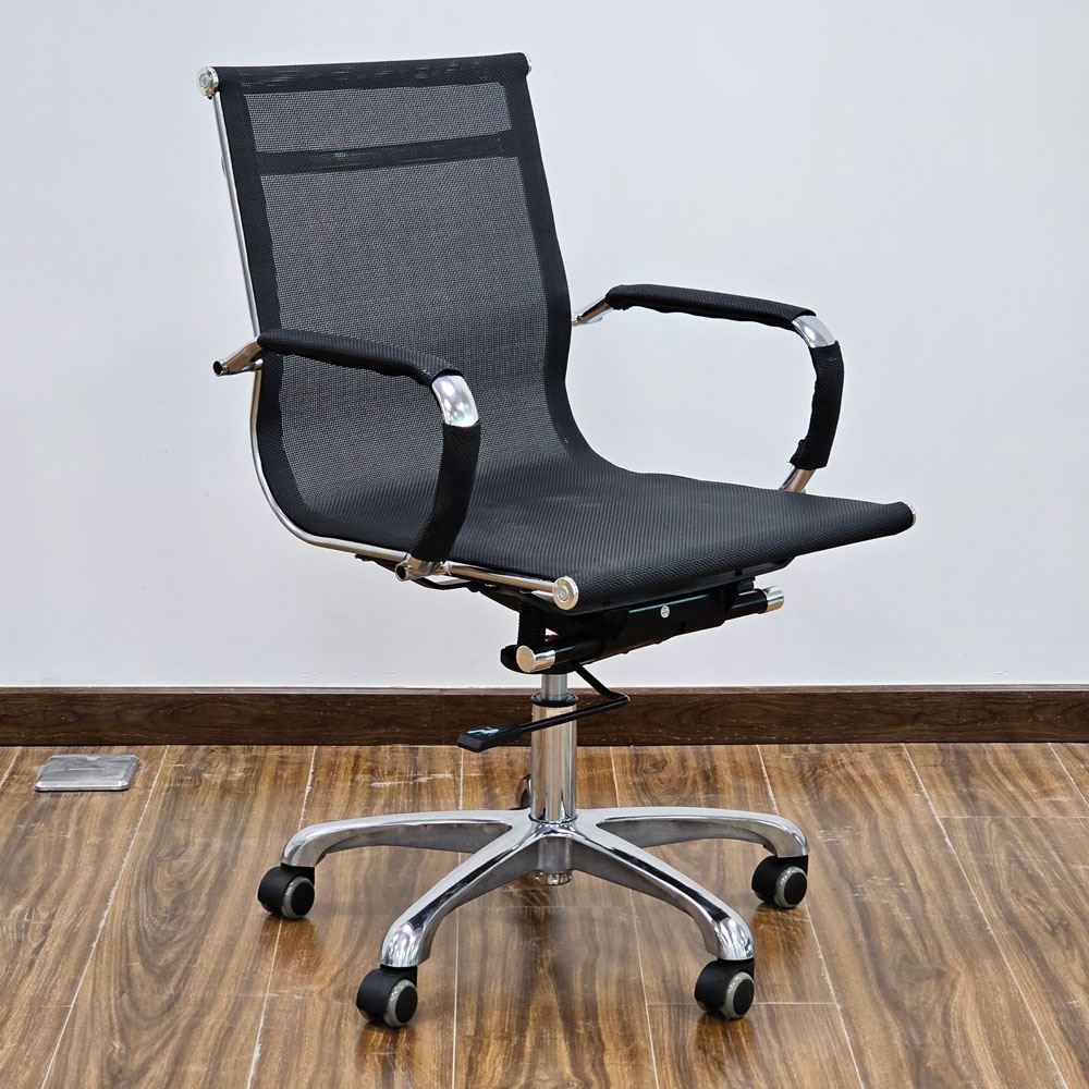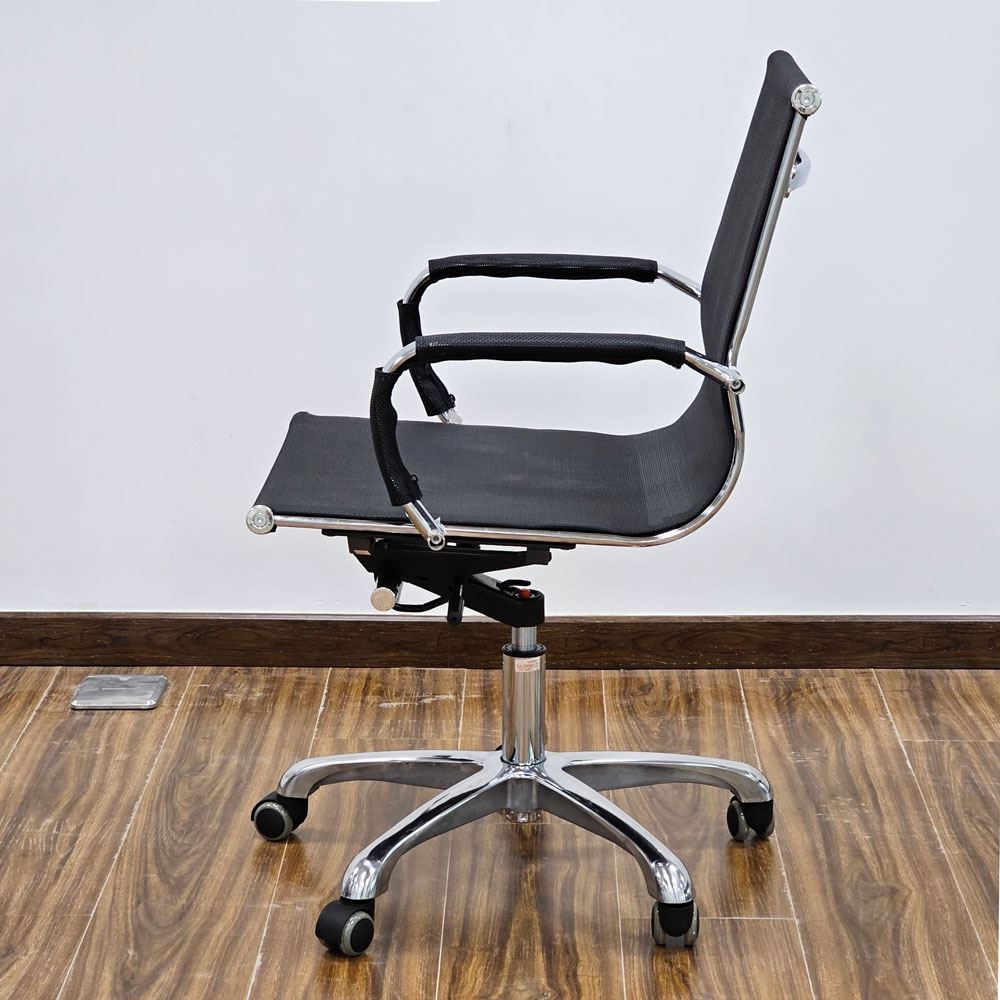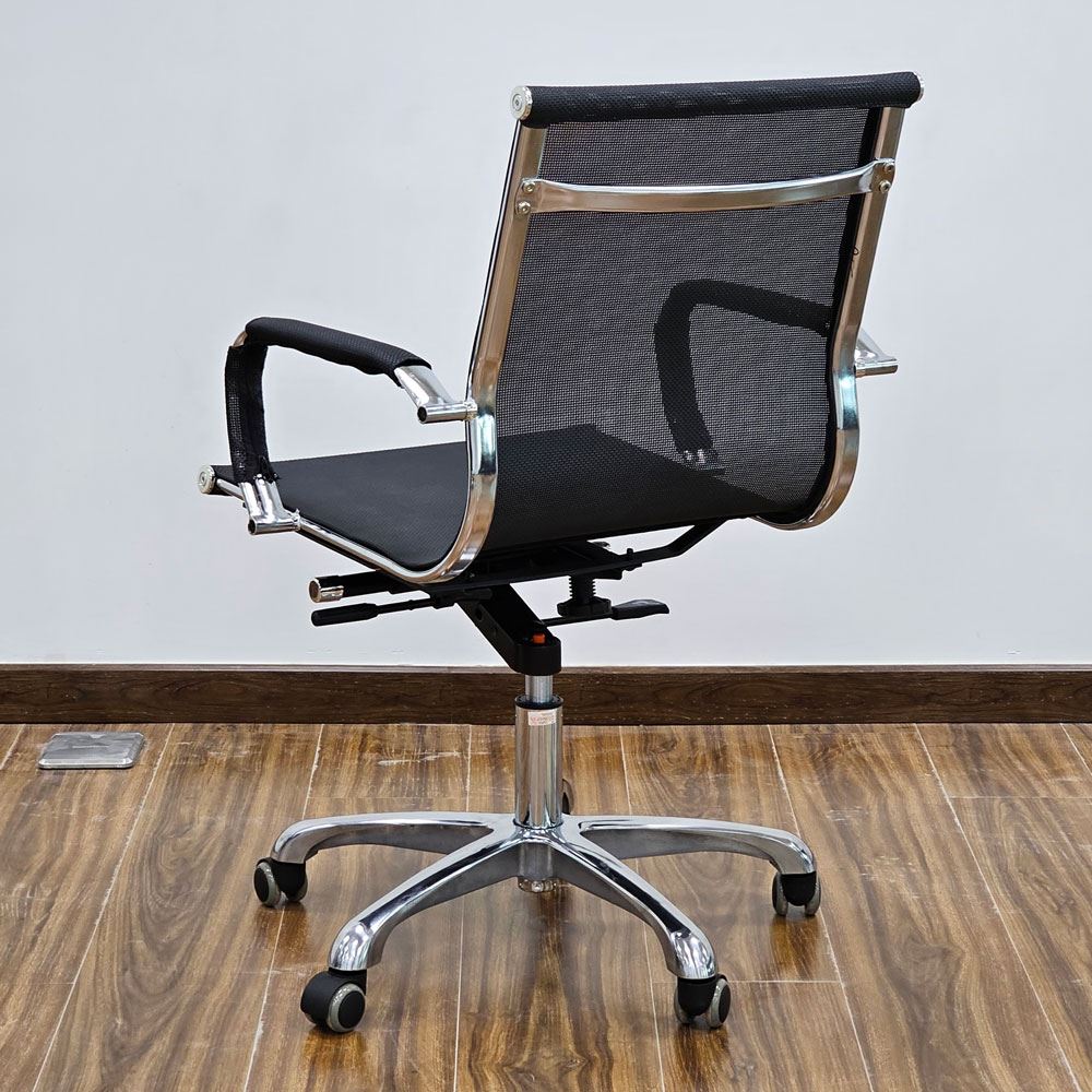 Ghế văn phòng chân xoay lưng lưới thấp MFM02 được nhiều khách hàng ưa chuộng và sử dụng rộng rãi tại các văn phòng, công ty nhờ thiết kế đơn giản, nhỏ gọn và thanh lịch phù hợp với hầu hết không gian văn phòng, công ty, hội nghị hay có thể là điểm nhấn cho không gian làm việc tại nhà. Phần khung ghế được thiết kế uốn cong theo hình dạng cột chống, tạo tư thế ngồi đúng, chống đau lưng khi ngồi lâu. Lưng và nệm ghế được làm bằng lưới thoáng khí mang đến sự thoái mái khi sử dụng trong thời gian dài.