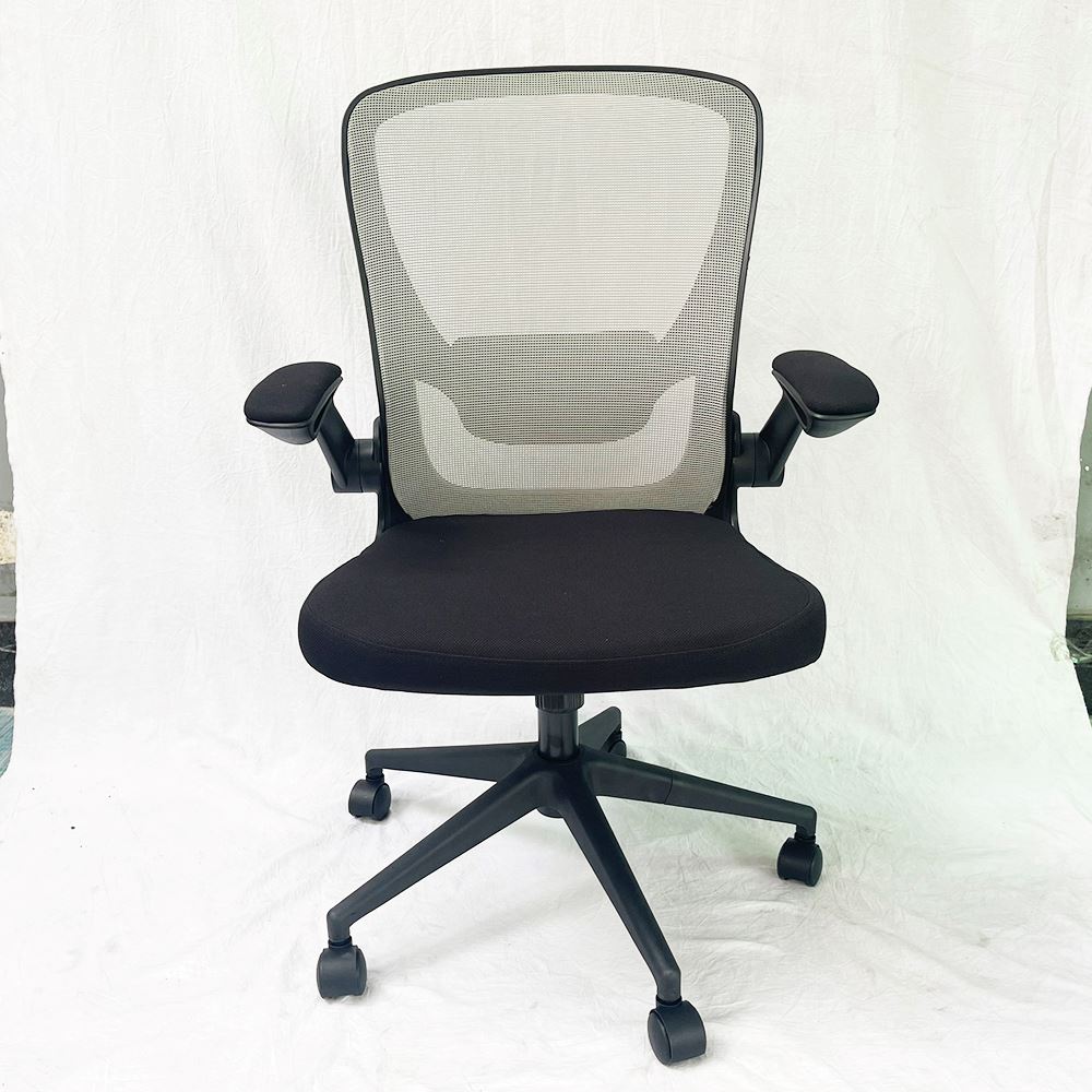 Ghế văn phòng chân xoay tay lật lưng lưới xám