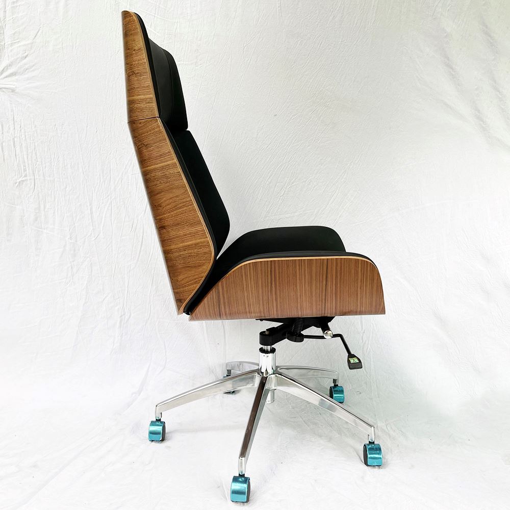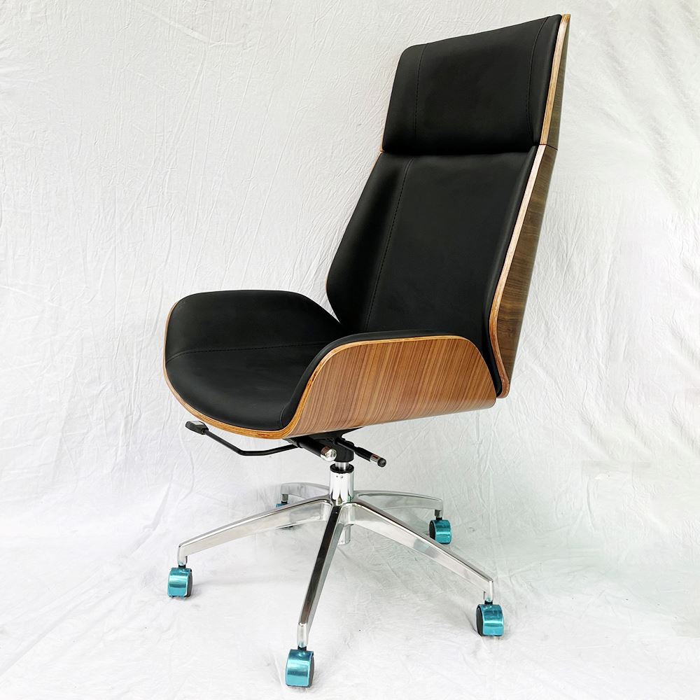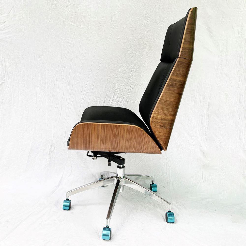 Ghế văn phòng lưng cao bọc da tựa lưng gỗ Wood 01