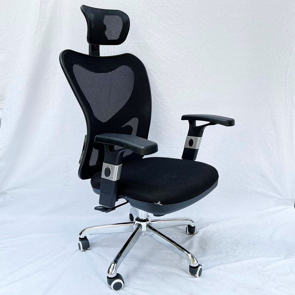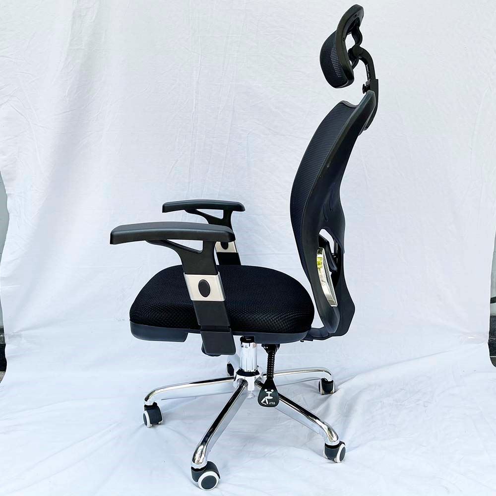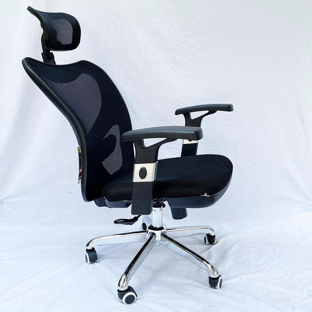 Ghế văn phòng lưng lưới tay nâng hạ có ngả lưng MFA812 thiết kế hiện đại với tựa đầu bọc vải nệm êm ái khung lưng nhựa bọc lưới đen cao cấp, nệm ngồi dày êm ái, khung lưng có đỡ cột sống cố định, tay ghế có thể điều chỉnh cao thấp, lưng ghế ngả nằm thoải mái, ghế sử dụng bộ điều khiển cao cấp 2 cần gồm cần nâng hạ và cần ngả lưng, chân hợp kim nhôm cao cấp đường kính lớn rất chắc chắn cùng bánh xe xoay 360 độ