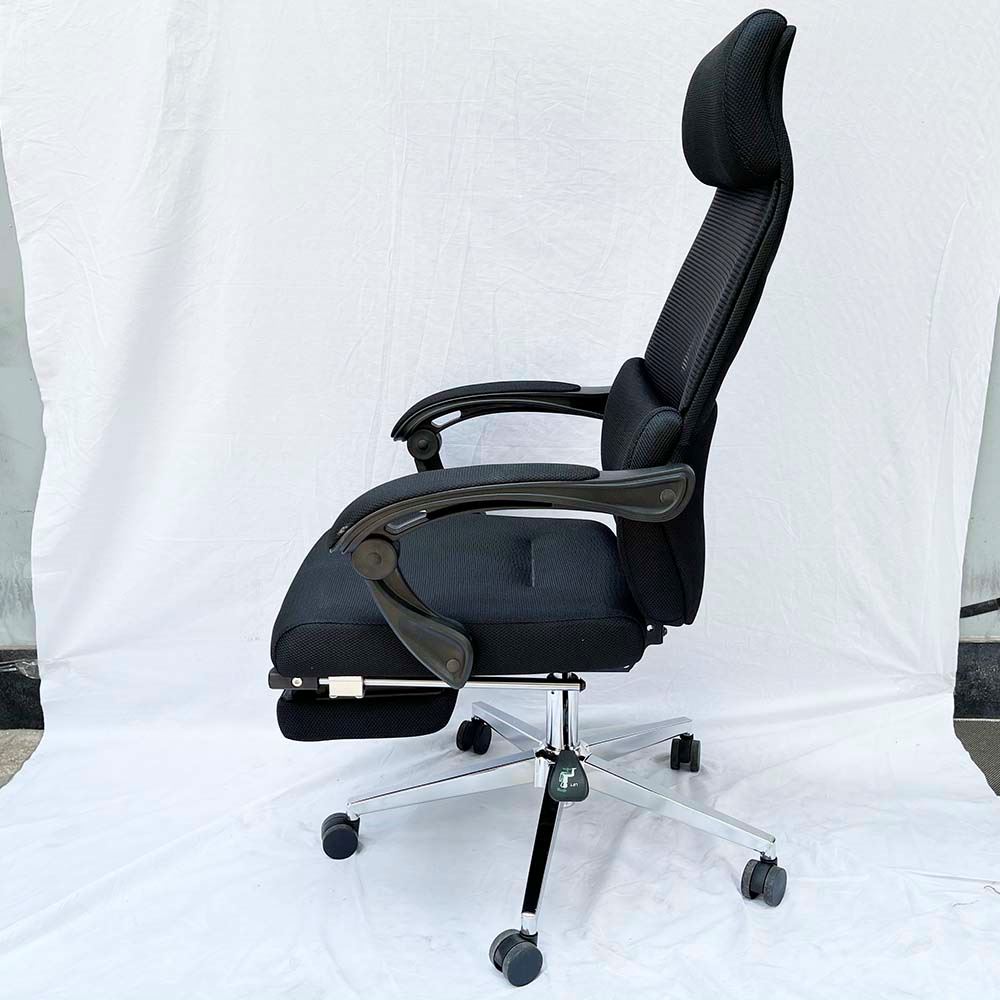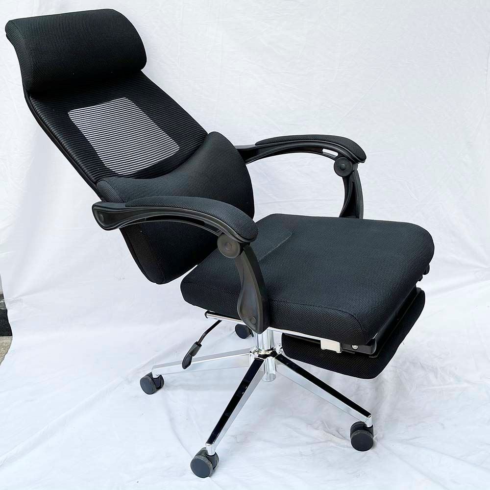 Ghế văn phòng ngả nằm có gác chân cao cấp MFA430 mẫu ghế thiết kế hiện đại với khung lưng nhựa chắc chắn bọc lưới kết hợp với nệm vải có tựa đầu cùng thiết kế đỡ lưng hỗ trợ cột sống, tay ghế nhựa có nệm di chuyển theo chiều ngả nằm hoặc không ngả nằm nên rất thoải mái, gác chân bọc vải lưới nệm dày. Ghế sử dụng bộ điều khiển 2 cần cao cấp gồm 1 cần nâng hạ chiều cao và một cần ngả nằm, chân sắt xi mạ cứng cáp, kiểu dáng đẹp, bán kính vòng chân lớn nên rất chắc chắn khi ngả nằm.