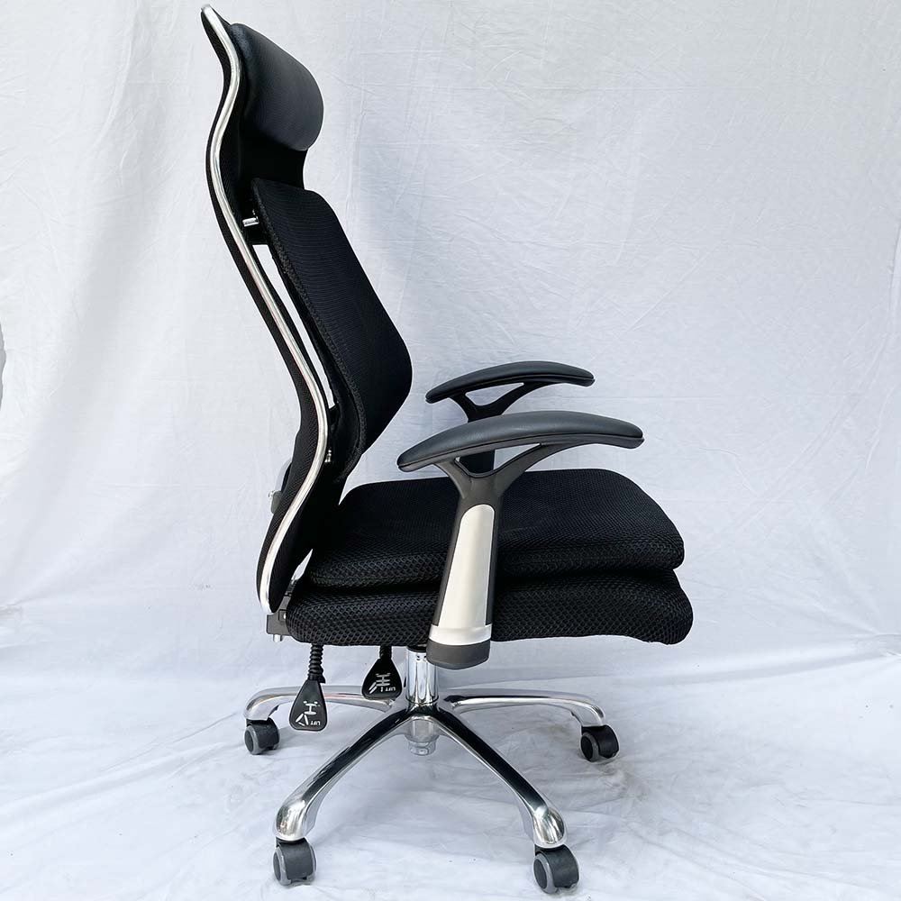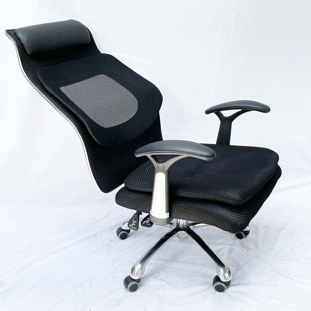 Ghế văn phòng ngả nằm có tựa đầu MF820 mẫu ghế thiết kế hiện đại với khung lưng nhựa chắc chắn bọc lưới kết hợp với nệm vải có tựa đầu cùng thiết kế đỡ lưng hỗ trợ cột sống. Ghế sử dụng bộ điều khiển 2 cần cao cấp gồm 1 cần nâng hạ chiều cao và một cần ngả nằm, chân sắt xi mạ cứng cáp, kiểu dáng đẹp, bán kính vòng chân lớn nên rất chắc chắn khi ngả nằm.
