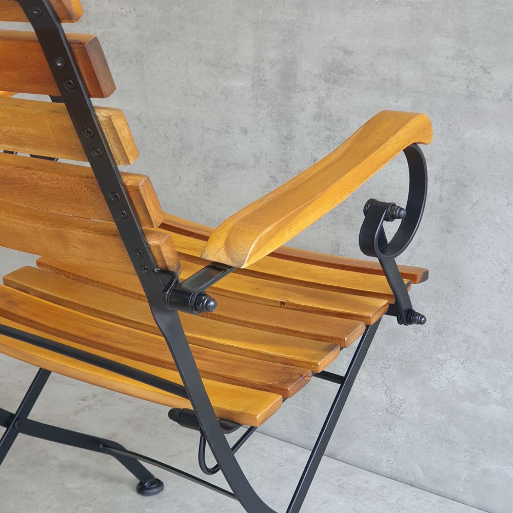 Ghế xếp gọn ngoài trời REFORD có tay vịn GCF079 là sản phẩm thuộc dòng ghế ngoài trời với bề mặt gỗ được phủ một lớp dầu có tác dụng không những chống thấm nước mà còn tôn lên màu sắc và vân tự nhiên của gỗ. Khung ghế được chế tác từ sắt có khả năng chịu lực cao và độ bền vượt thời gian. Màu gỗ tự nhiên kết hợp khung sắt sơn tĩnh điện màu đen mang đến sự ấm áp, phù hợp với nhiều không gian từ cổ điển cho tới hiện đại.