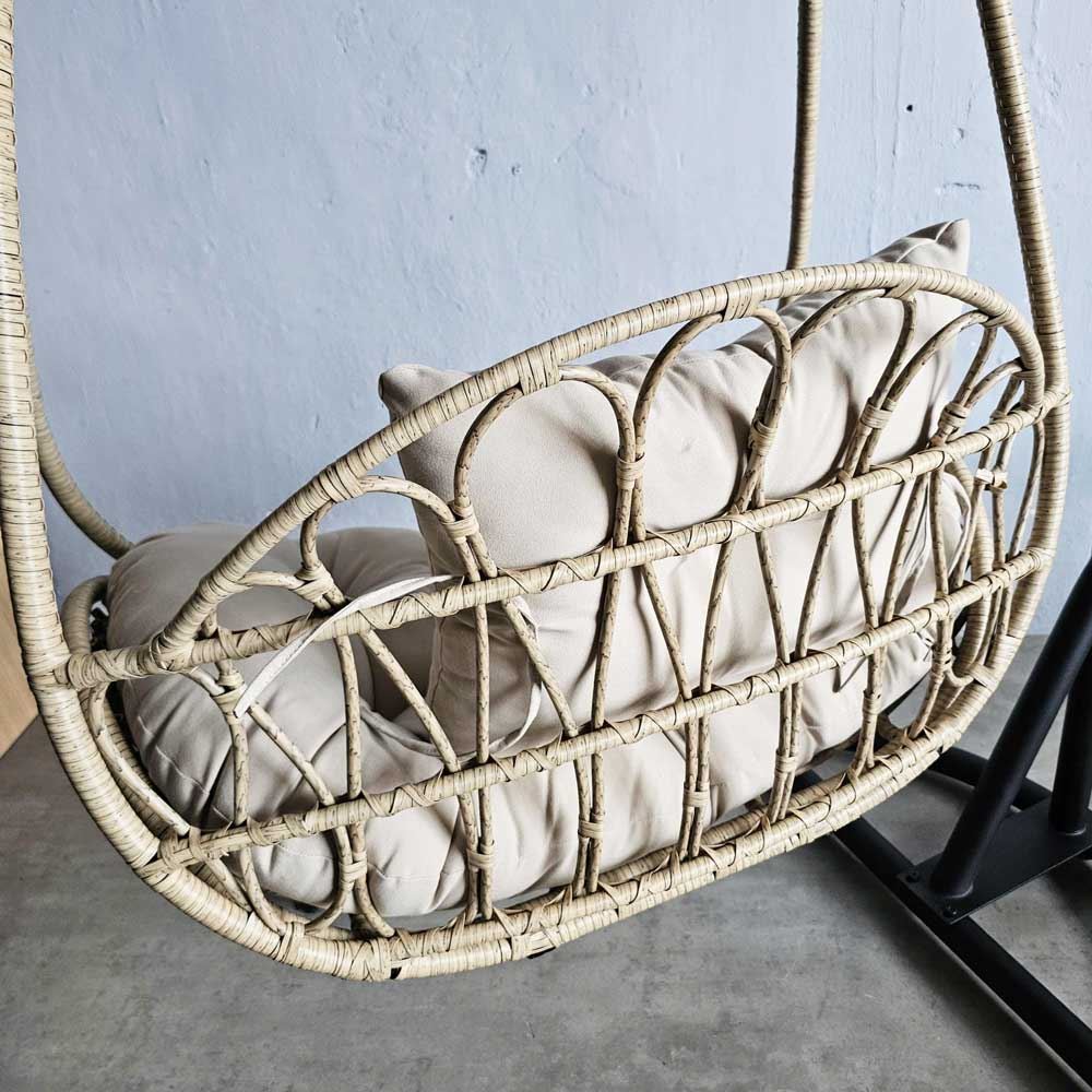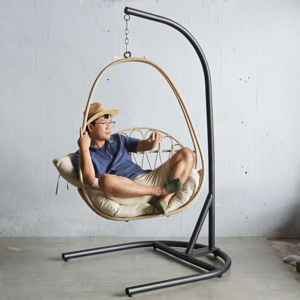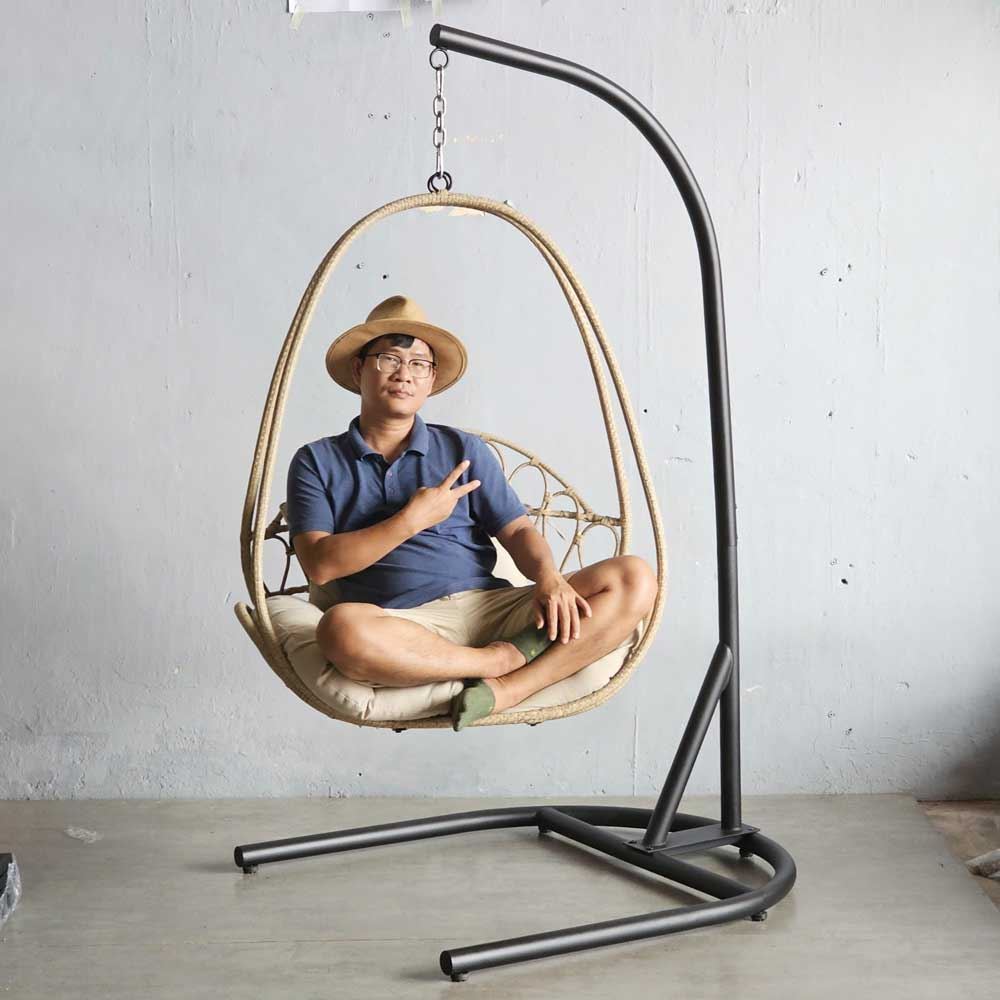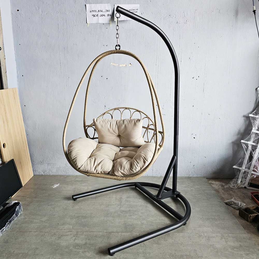 Ghế xích đu thư giãn khung sắt GTG68001 có kích thước phủ bì 1000x1100x1930mm, trong đó kích thước lồng là 860x600x1100mm, chịu tải lên tới 150kg. Toàn bộ khung xích đu và lồng được làm từ thép ống sơn tĩnh điện màu đen, lưới đan lồng là mây nhựa cao cấp chịu được mưa nắng. Vì vậy, xích đu Lora có thể sử dụng cả trong nhà lẫn ngoài trời.