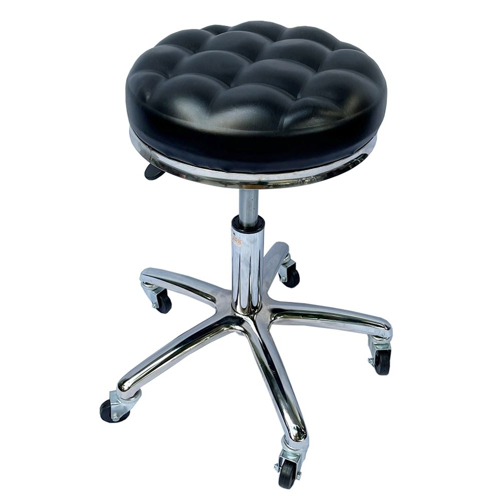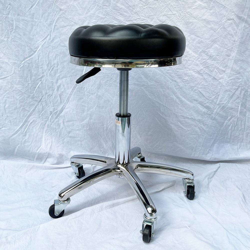 Ghế xoay nệm tròn điều chỉnh độ cao MFF134 được thiết kế và sản xuất dành cho các thẩm mỹ viện, trung tâm làm đẹp spa, tiệm làm tóc hay tiệm xăm... Mặt ghế là các đường vân cách điệu thoáng khí mang đến sự thoải mái khi sử dụng cũng như đảm bảo tính thẩm mỹ. Đệm mút có tính đàn hồi cao, không bị biến dạng khi dùng lâu. Khung ghế làm bằng sắt mạ crome chống rỉ sét chịu lực tốt, chân ghế gắn 5 bánh xe di chuyển nhẹ nhàng, linh hoạt. Bên cạnh đó ghế trang bị cần gạt nâng chỉnh độ cao tuỳ theo người sử dụng.