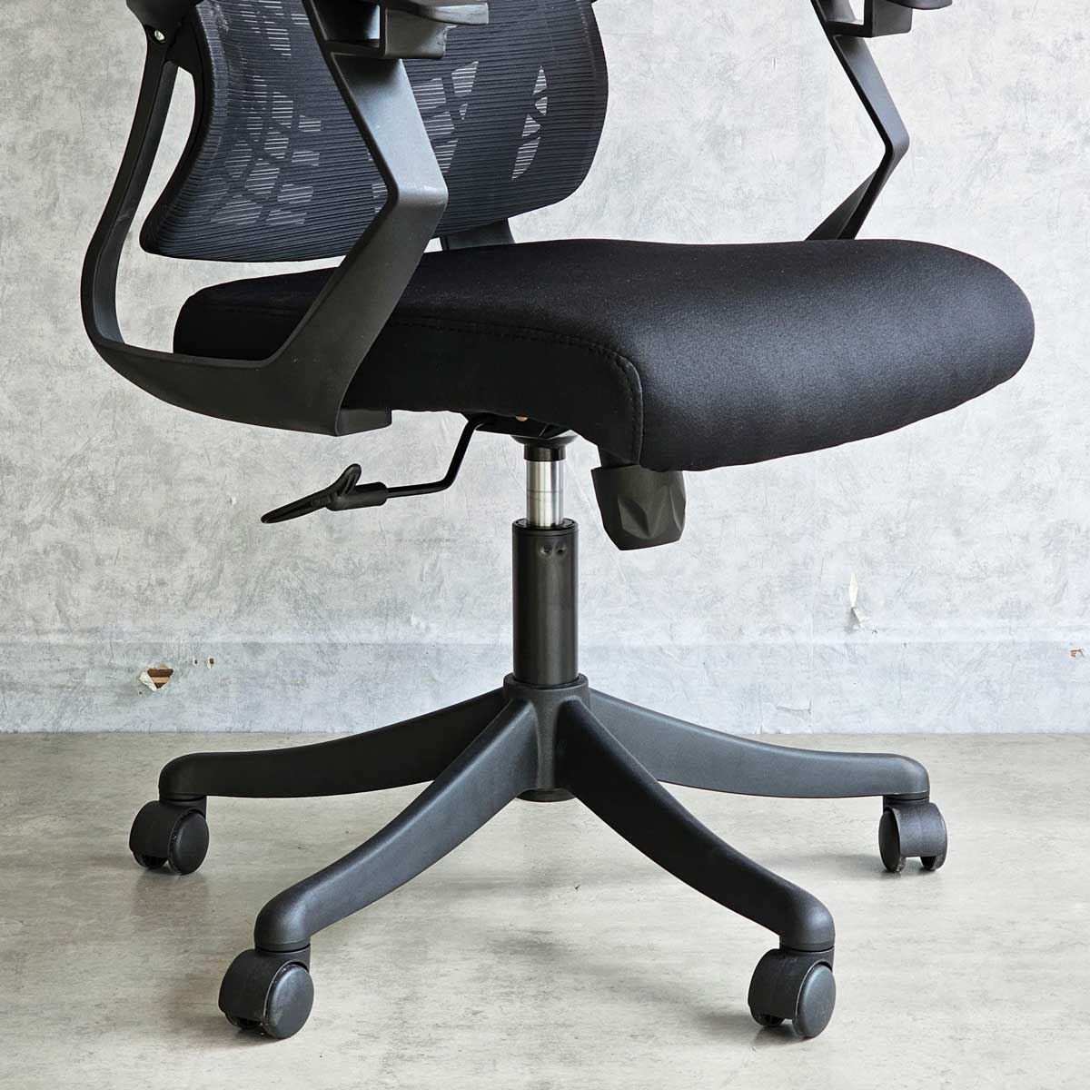 Nệm ghế được làm dày dặn và đàn hồi tốt giúp mang lại sự thoải mái khi ngồi. Tựa tay được thiết kế hình học ấn tượng và đẹp mắt, và tựa đầu êm ái giúp bạn ngồi thoải mái, chống mệt mỏi. Bộ điều khiển trên ghế cho phép tùy chỉnh chiều cao và góc ngả lưng để phù hợp với người sử dụng. Chân ghế được làm từ nhựa đúc liền khối, mang lại độ bền và ổn định. Bánh xe nhẹ nhàng và linh hoạt giúp di chuyển dễ dàng trên mặt sàn. Phù hợp để làm ghế văn phòng, ghế gaming hoặc ghế làm việc.