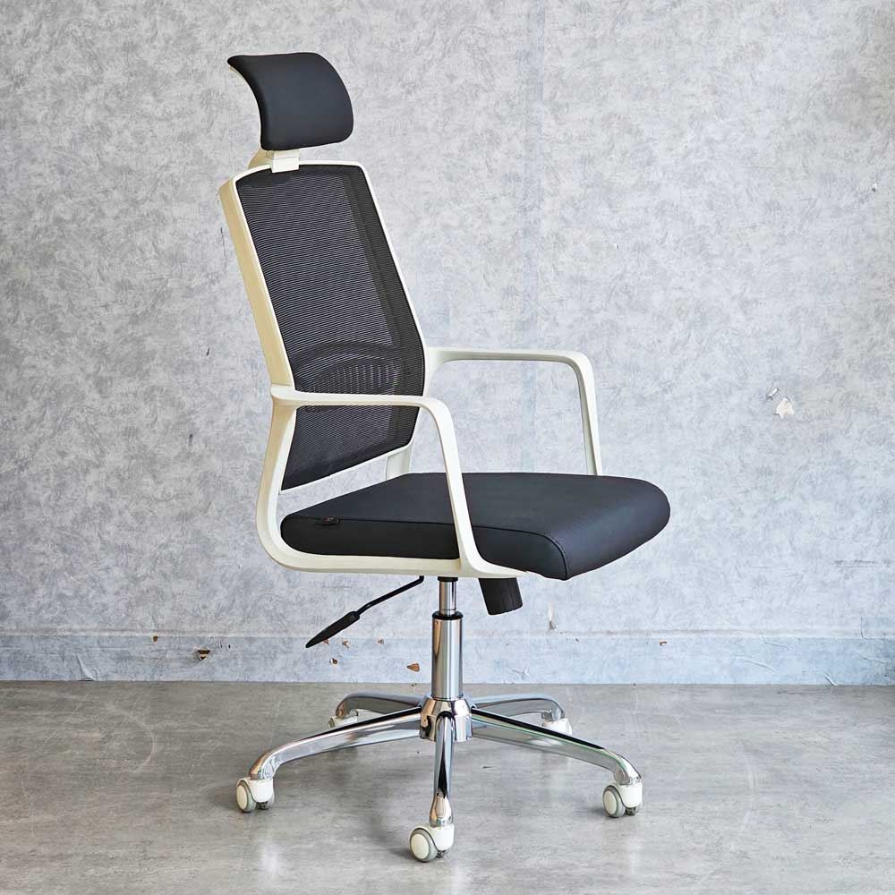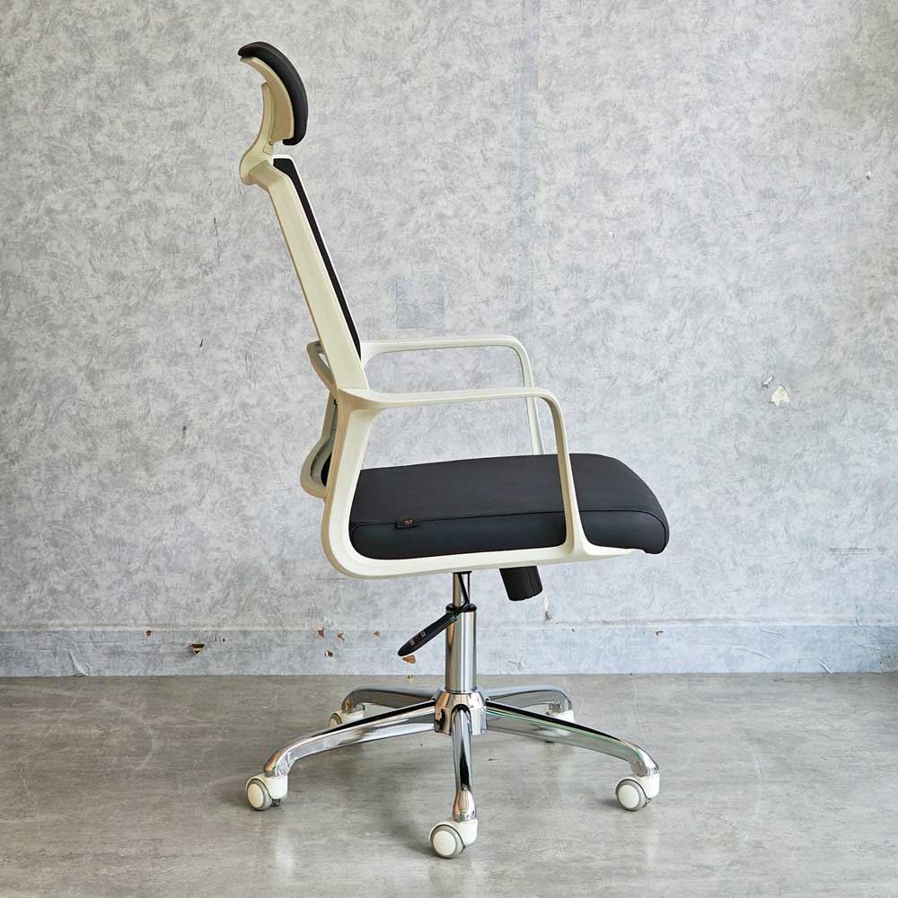 Ghế xoay văn phòng có kiểu dáng hiện đại và thanh lịch, với các đường nét gọn gàng và tinh tế