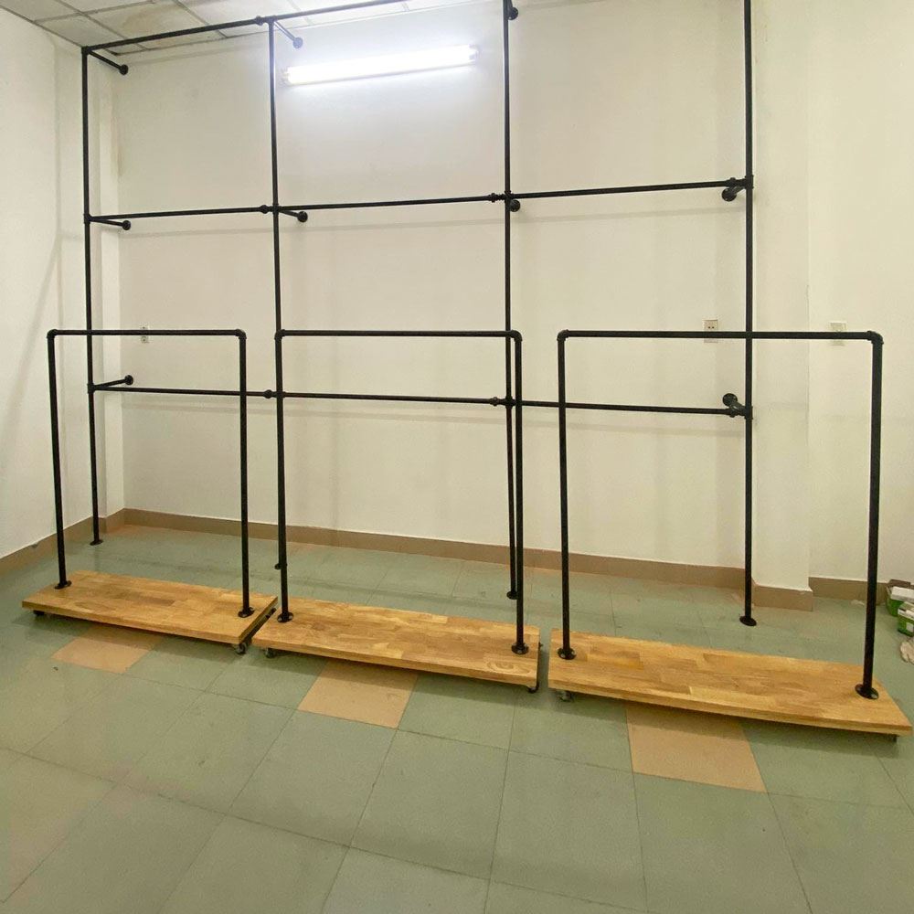 - Chất liệu: Gỗ cao su - Khung ống nước sắt sơn tĩnh điện