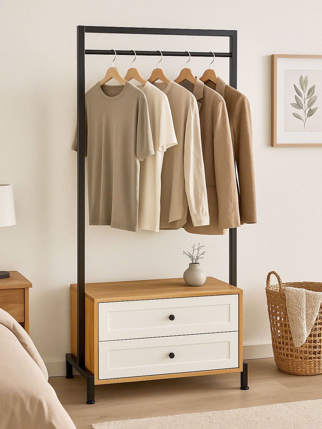 Giá treo quần áo có ngăn tủ 75x40x190cm gỗ cao su TQA68061