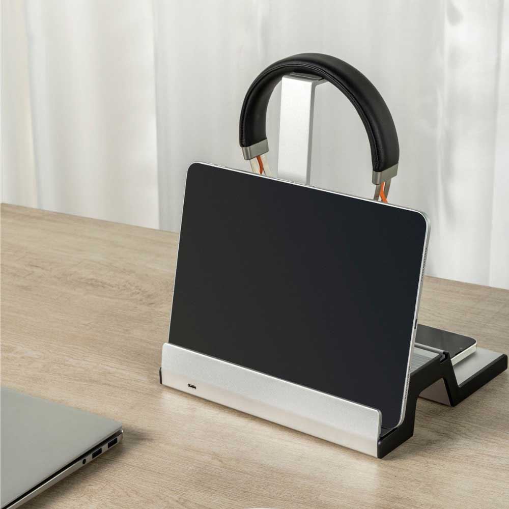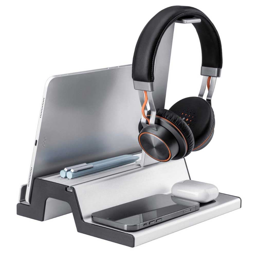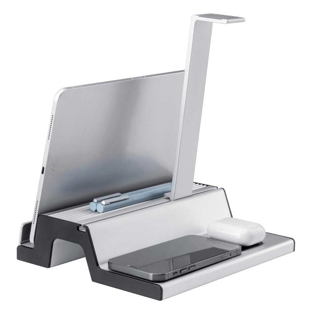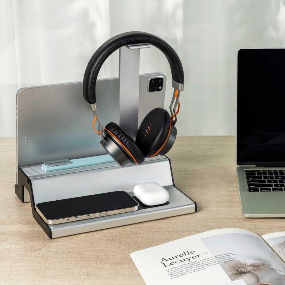 Bên cạnh đó, Giá treo DA07-2S còn có bộ phận treo tai nghe, một khay để máy tính bảng, laptap (dày dưới 2cm) và có thể để thêm một số loại văn phòng phẩm khác. Khe phía trước đóng vai trò là giá đỡ máy tính bảng/điện thoại để giúp bạn rảnh tay, nó có tác dụng hỗ trợ công việc của bạn rất tốt.