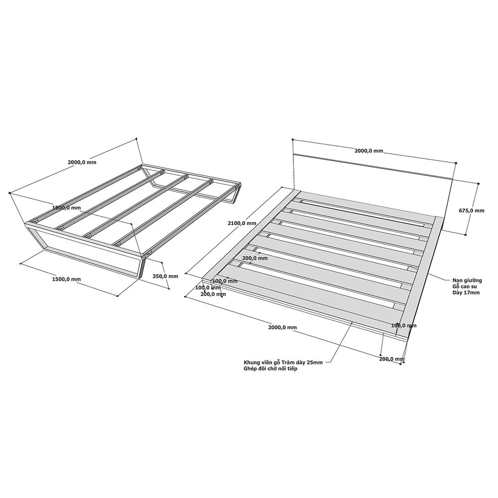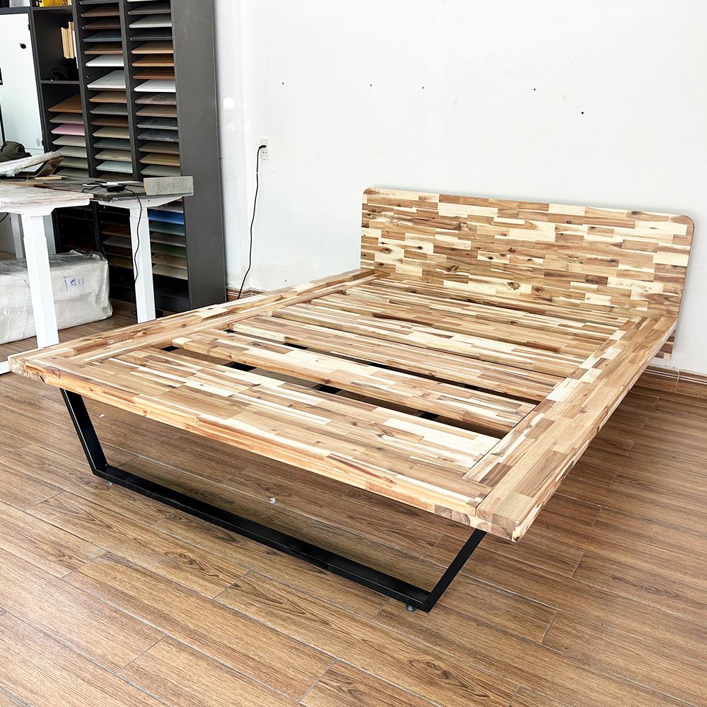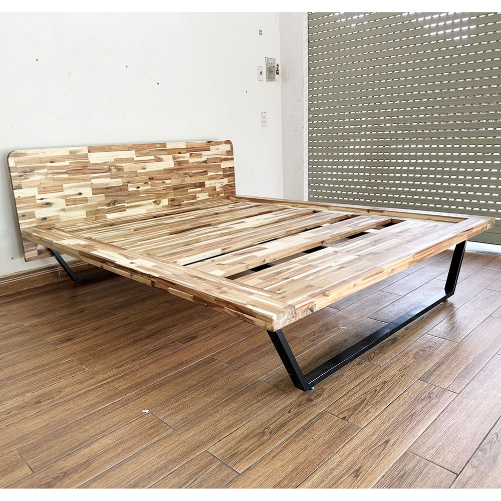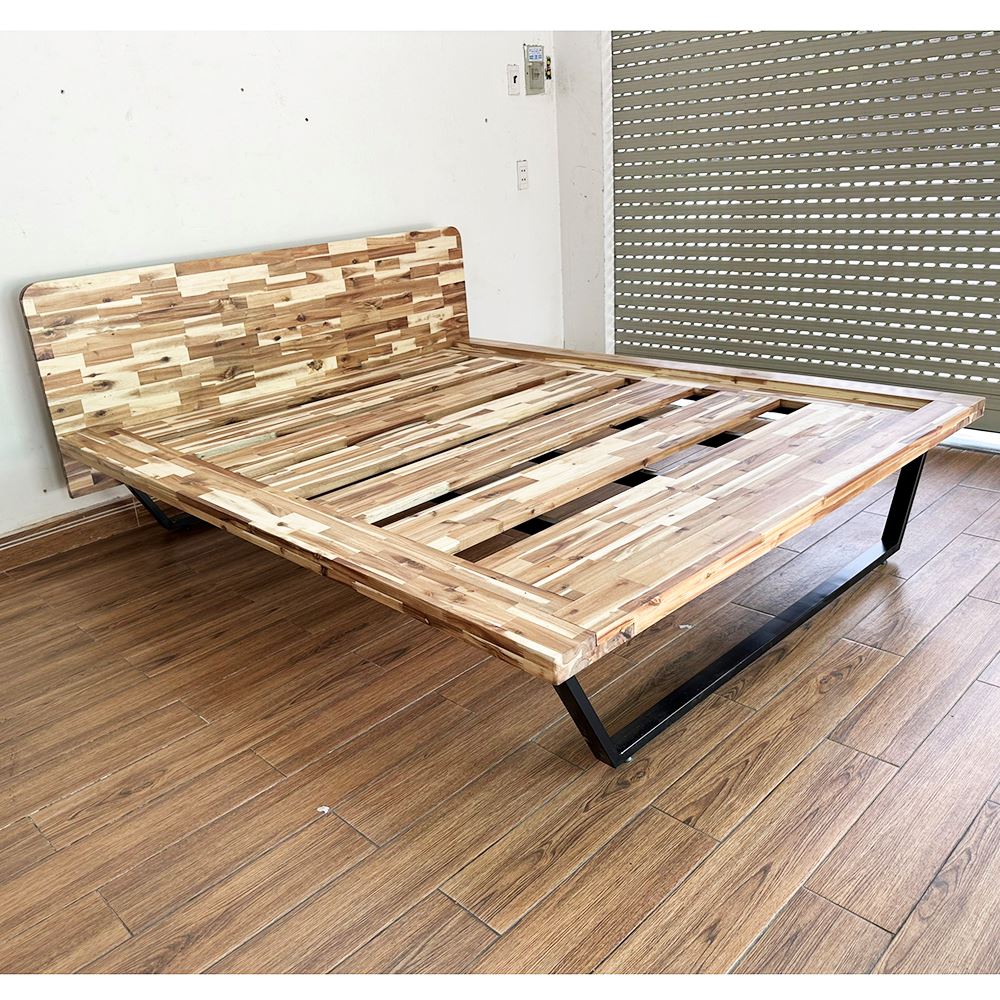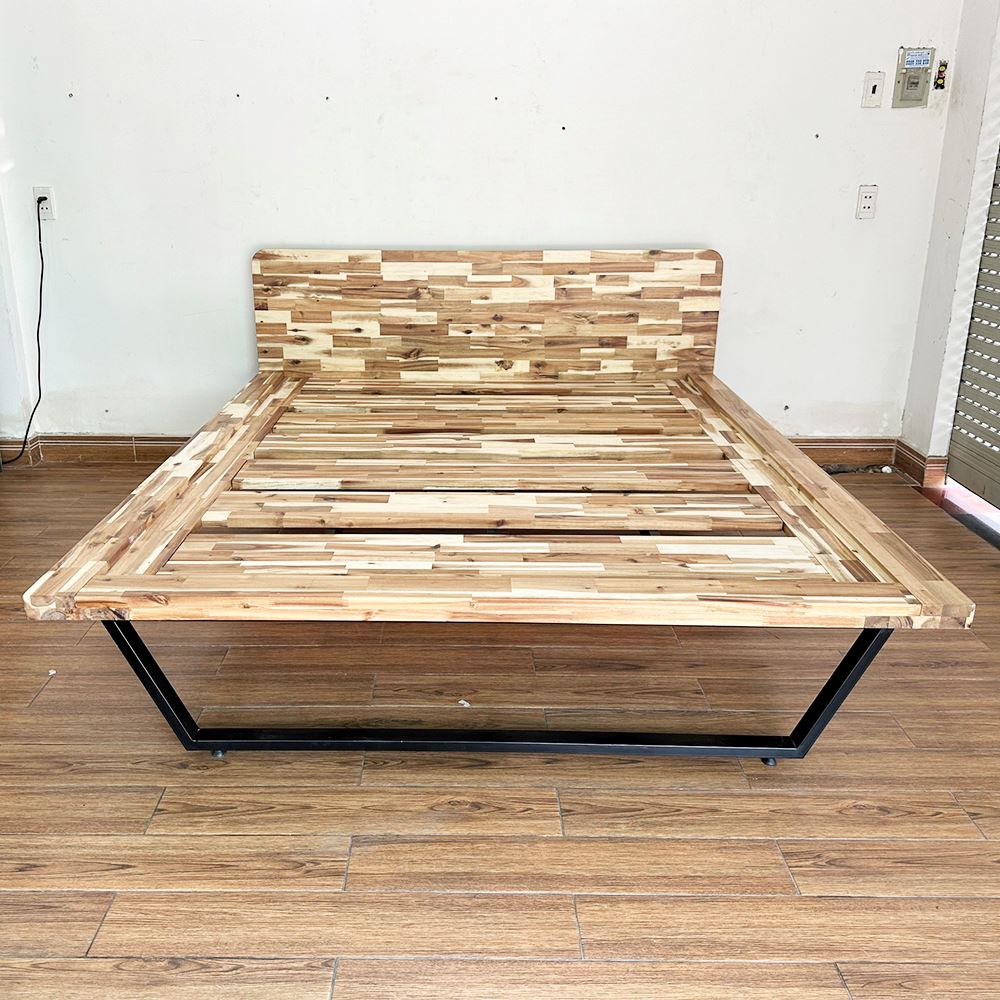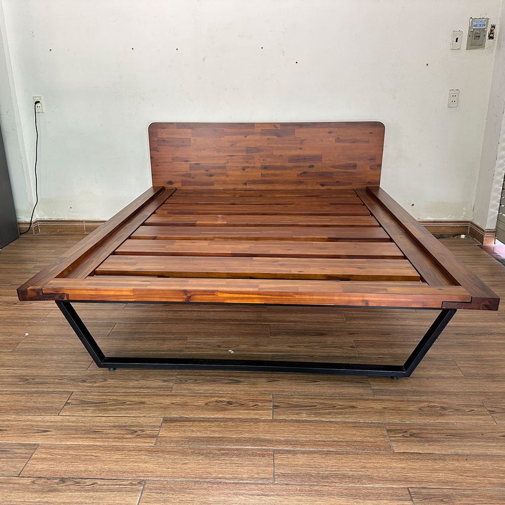 Giường ngủ đôi gỗ tràm khung sắt GN68044 sử dụng GỖ TRÀM dày 25mm tiêu chuẩn AA được xử lý PU hoàn thiện cho bề mặt sản phẩm rất đẹp mắt kết hợp với khung chân sắt dày 1.2mm chắc chắn, bề mặt sắt sơn tĩnh điện chất lượng cao, nước sơn đẹp mắt và bền bỉ theo thời gian. Kích thước tương đối lớn phù hợp với không gian phòng ngủ có diện tích rộng rãi
