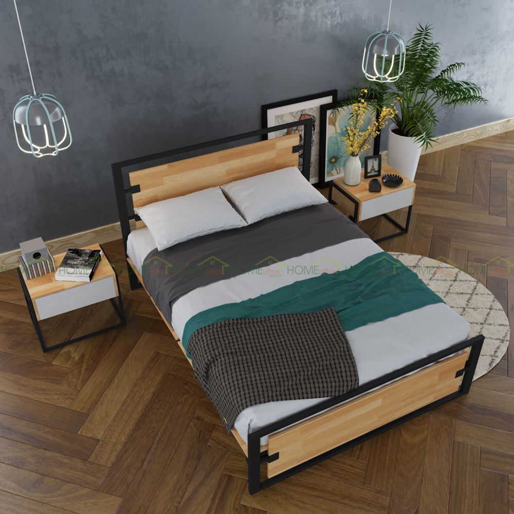 Mẫu giường ngủ ấn tượng & sáng tạo với sự kết hợp giữa chân sắt và gỗ cao su