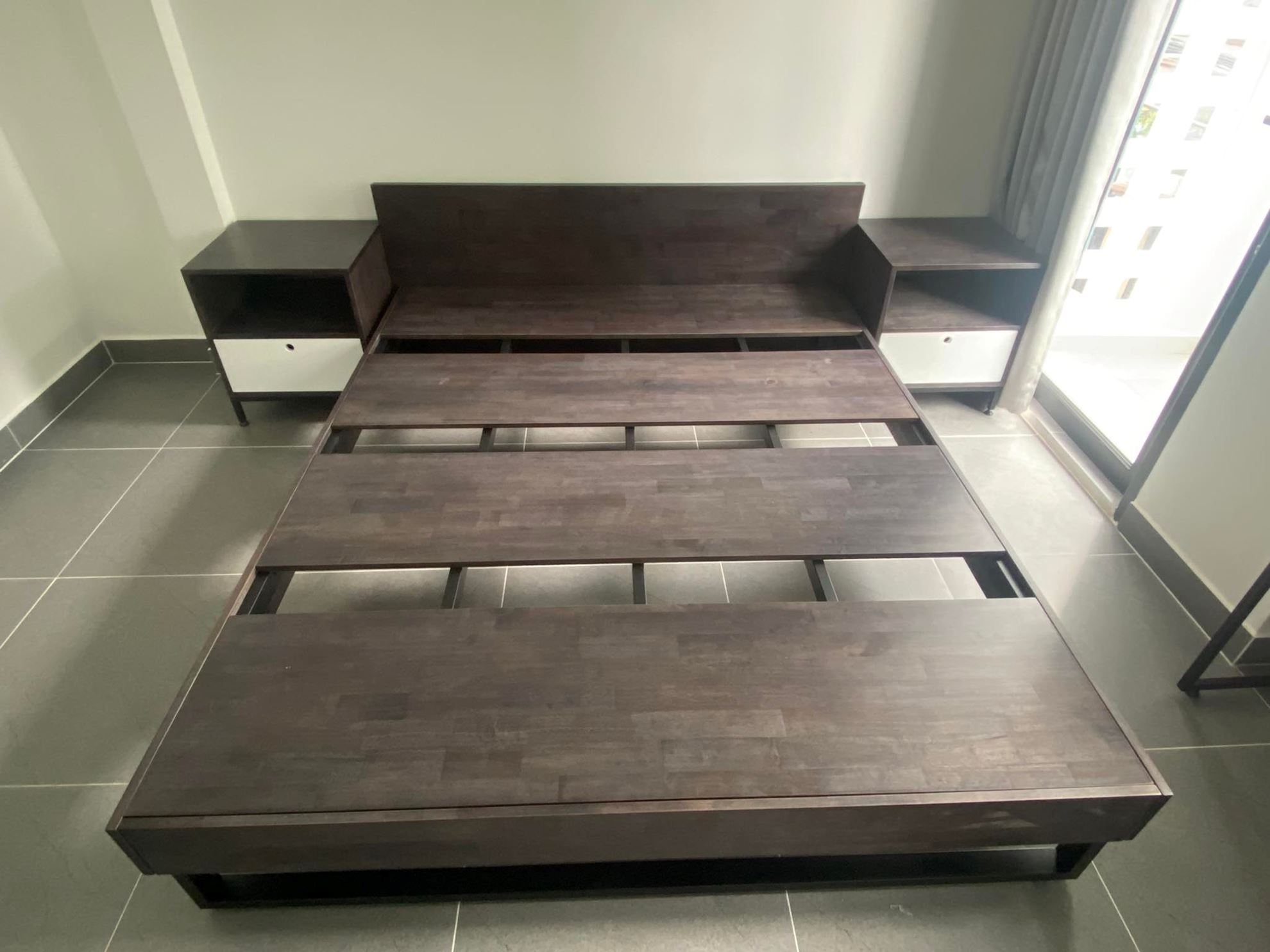 GN68005 - Giường ngủ Ferro viền gỗ - 200x160x35 (cm) - Mẫu giường ngủ hiện đại trong bộ sưu tập mới của HomeOffice về nội thất gia đình. Bộ sưu tập Ferro mùa thu đặc trưng với những kiểu thiết kế lạ mắt và độc đáo dựa trên sự kết hợp chân sắt hộp và gỗ cao su tự nhiên.