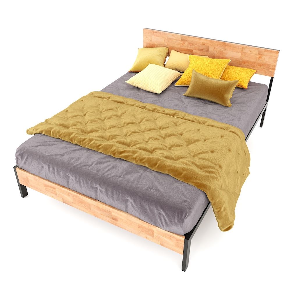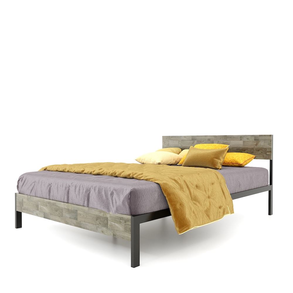 Giường ngủ 140x200cm gỗ cao su khung sắt