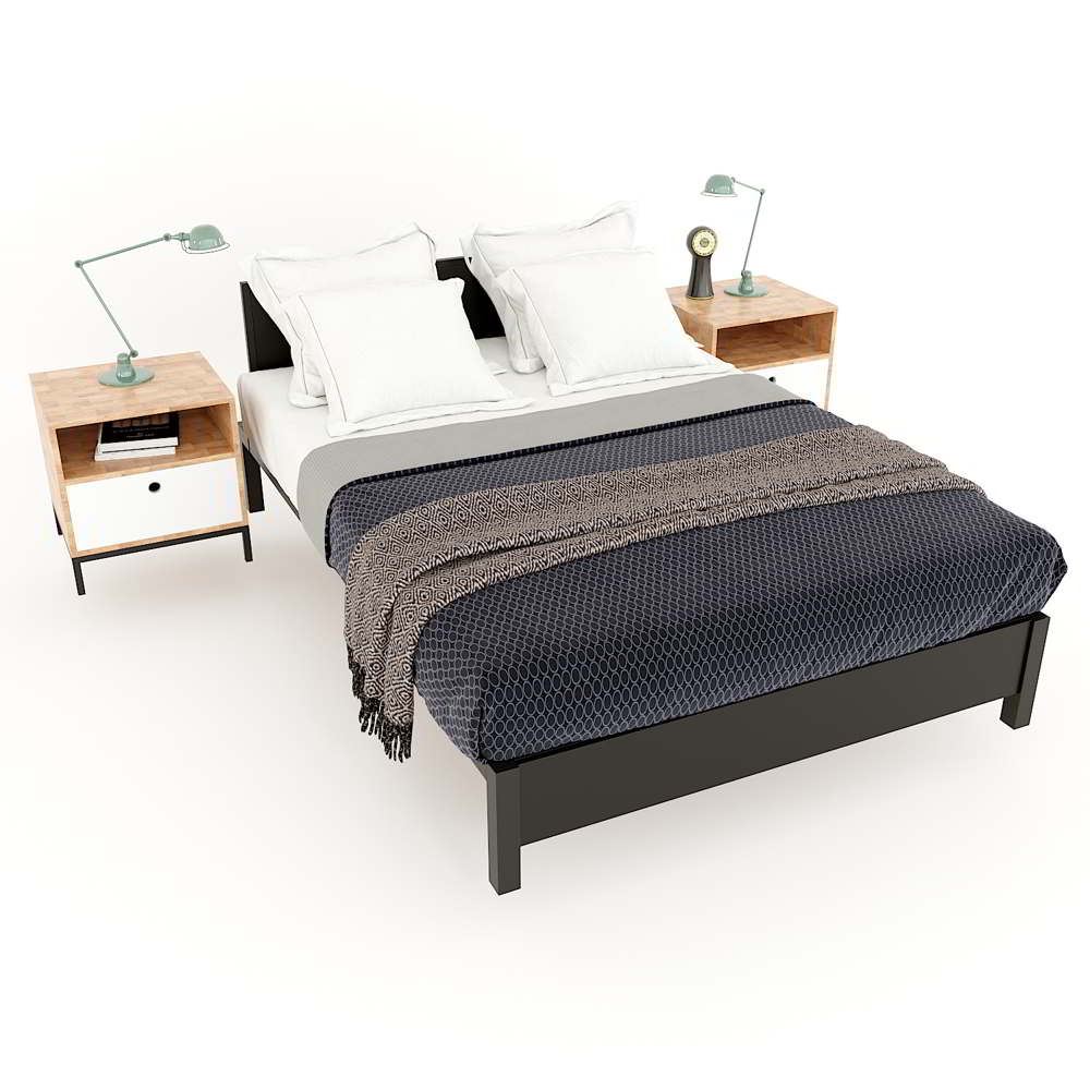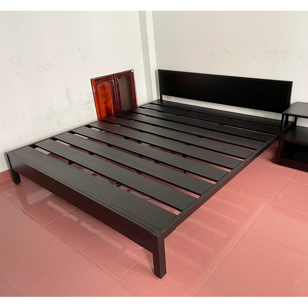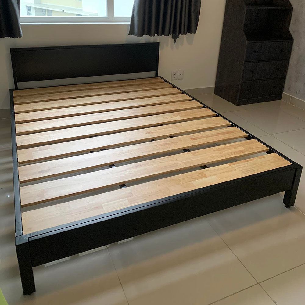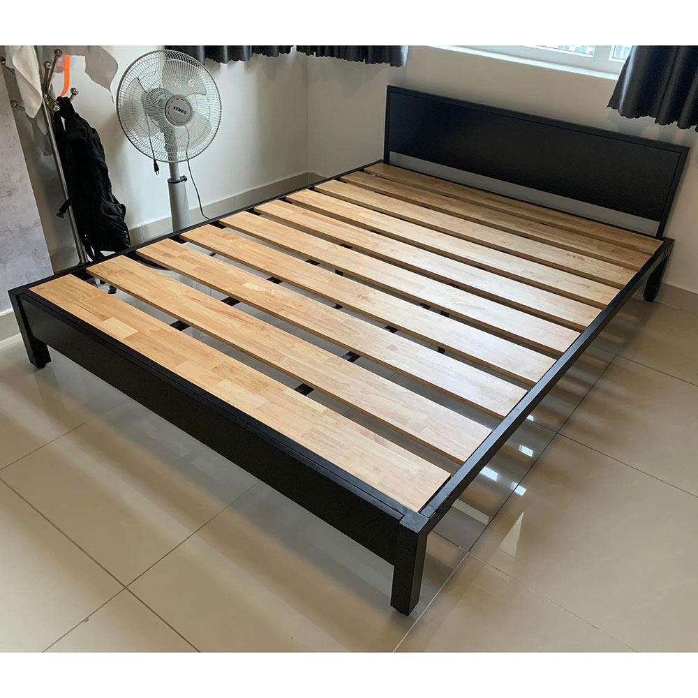 Vật liệu gỗ kết hợp khung sắt mang đến chiếc giường mang vẻ đẹp hài hòa giữa hiện đại và truyền thống