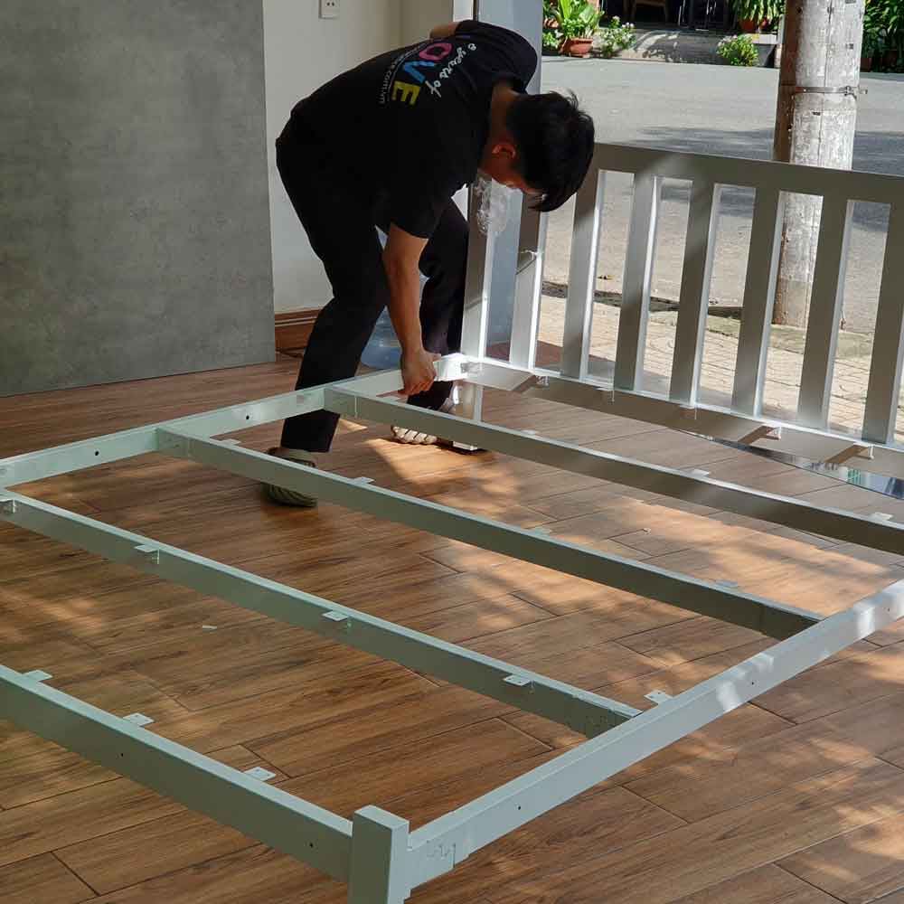 Giường ngủ GN68049 là sự kết hợp của gỗ cao su tự nhiên tiêu chuẩn AA được xử lý và hoàn thiện chống thấm nước chống cong vênh đảm bảo độ bền cao. Kết hợp với mặt gỗ cao su là khung sắt vuông và sắt hộp cơ cấu lắp ráp ngàm dễ dàng tháo lắp, thuận tện di dời khi cần nhưng vẫn đảm bảo độ chịu lực tốt giúp bạn yên tâm khi nằm.