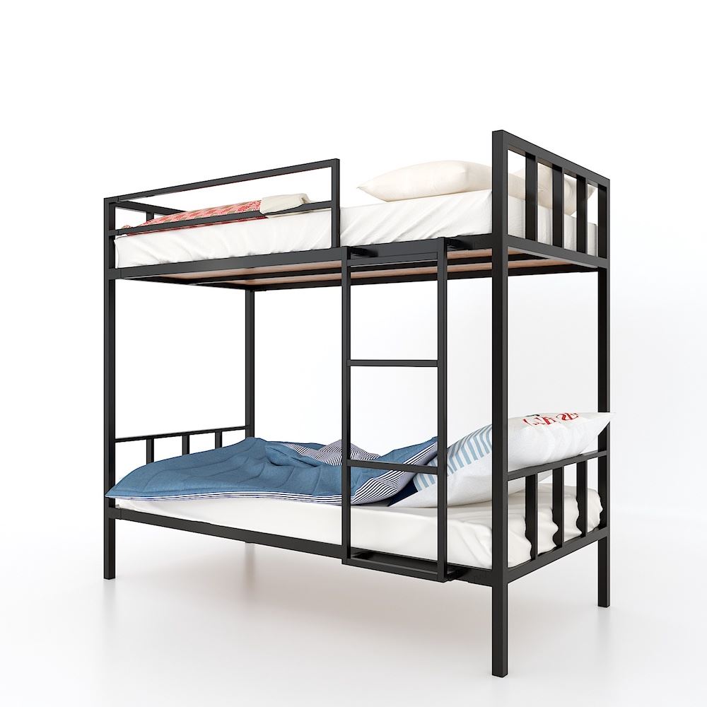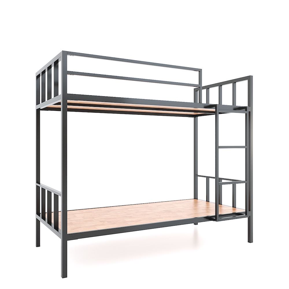 Giường tầng gỗ cao su tự nhiên khung sắt GT005 với hệ khung sắt lắp ráp sơn tĩnh điện vô cùng chắc chắn và khoa học kết hợp với gỗ cao su tiêu chuẩn AA sơn Pu hoàn thiện với hai màu chính là gỗ tự nhiên và màu nâu lau, mặt gỗ đẹp có thể nằm với chiếu hoặc nệm đều được. Chiếc giường tầng trong những căn nhà diện tích khiêm tốn là một món đồ nội thất rất cần thiết, bên cạnh công năng thì chất lượng sản phẩm, vẻ thẩm mỹ cũng được HomeOffice chú ý đến trong các chi tiết sản xuất hoàn thiện. Mẫu giường phù hợp với nệm kích thước 1mx2m 2 tầng cho hai người nằm ngủ thoải mái .