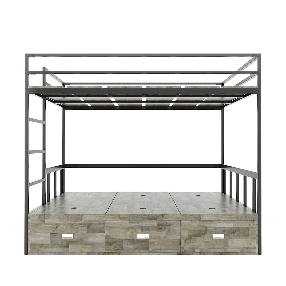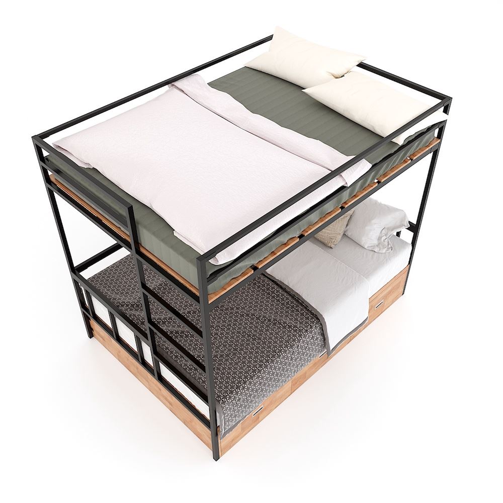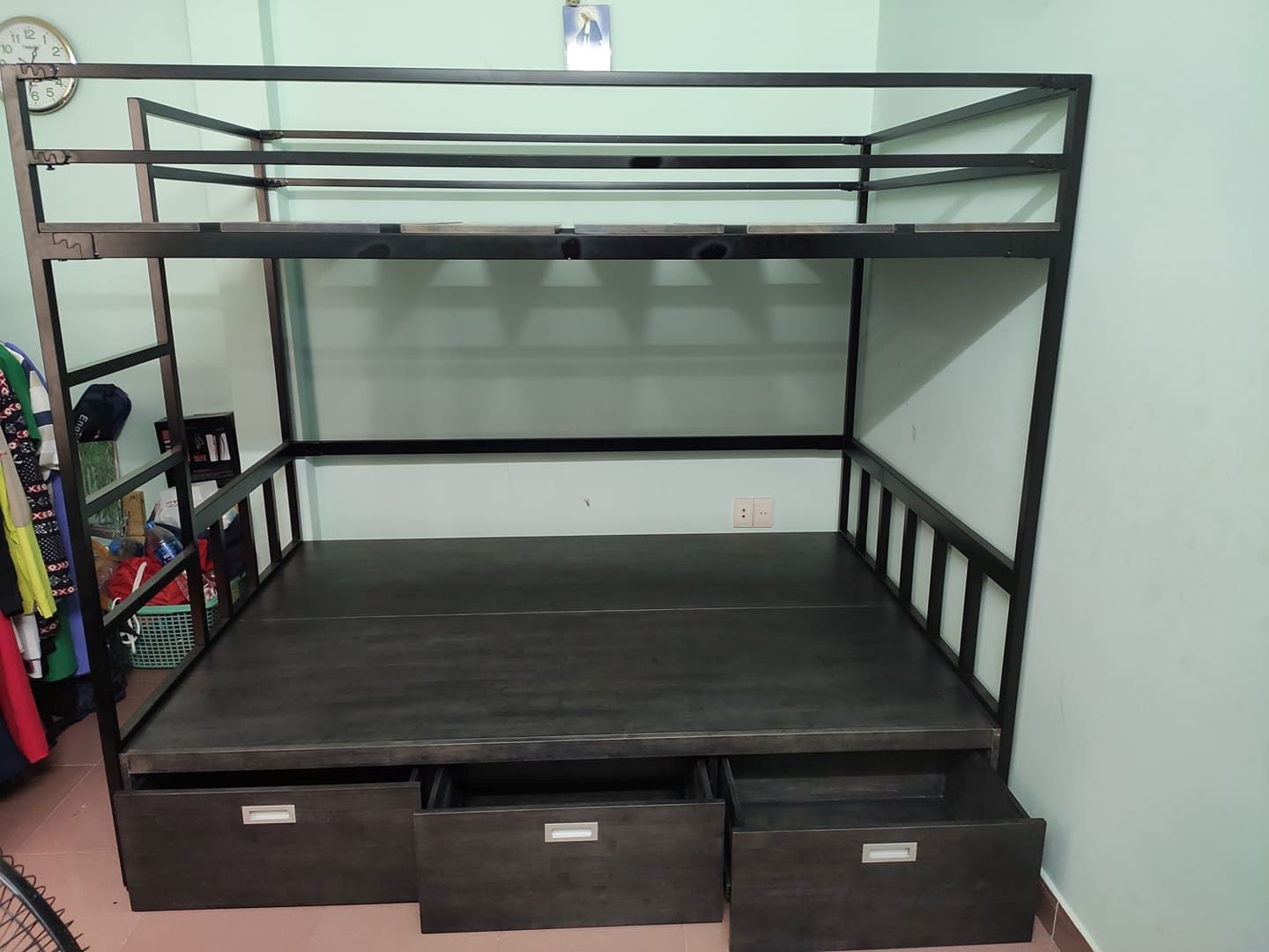 Giường tầng 140x200cm kết hợp hộc tủ gỗ cao su tự nhiên