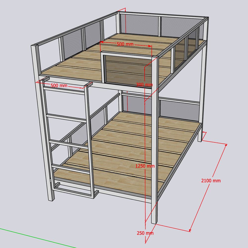 Giường tầng lắp ráp 125x210x180cm gỗ cao su GT015