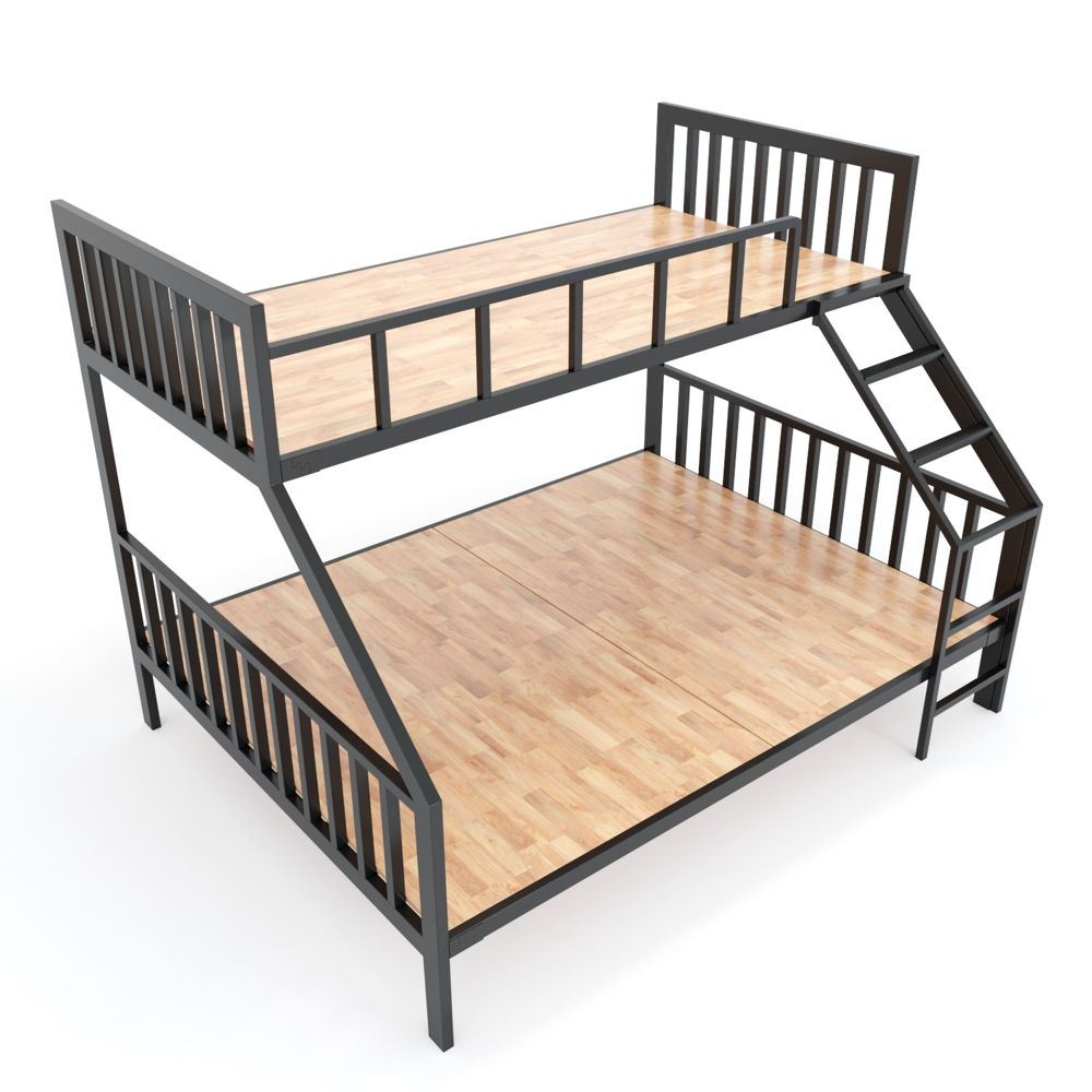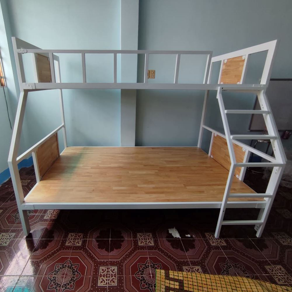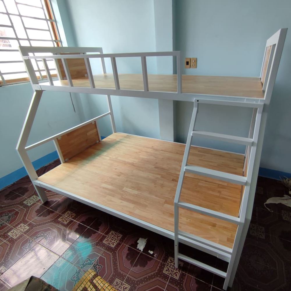Giường tầng khung sắt lắp ráp gỗ cao su