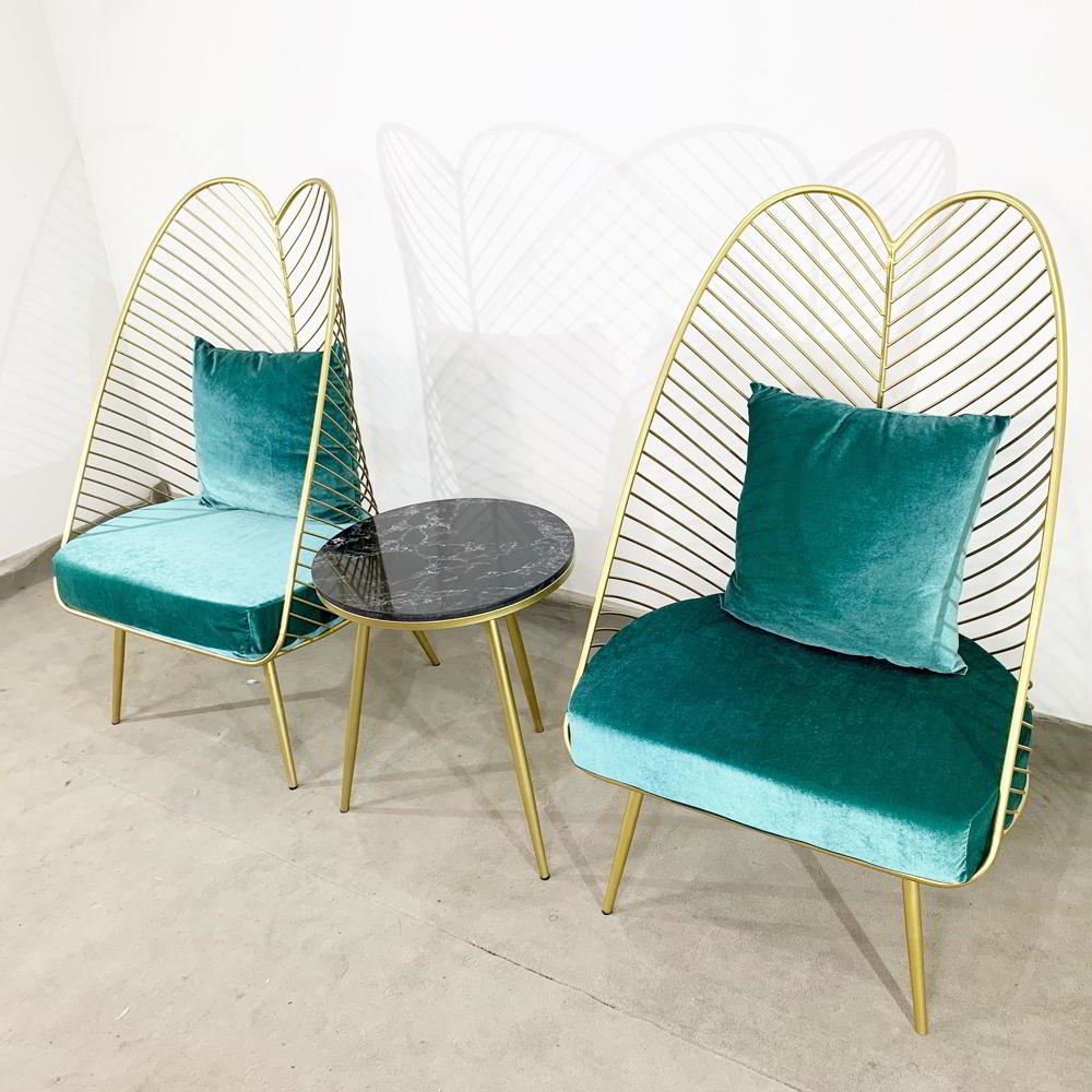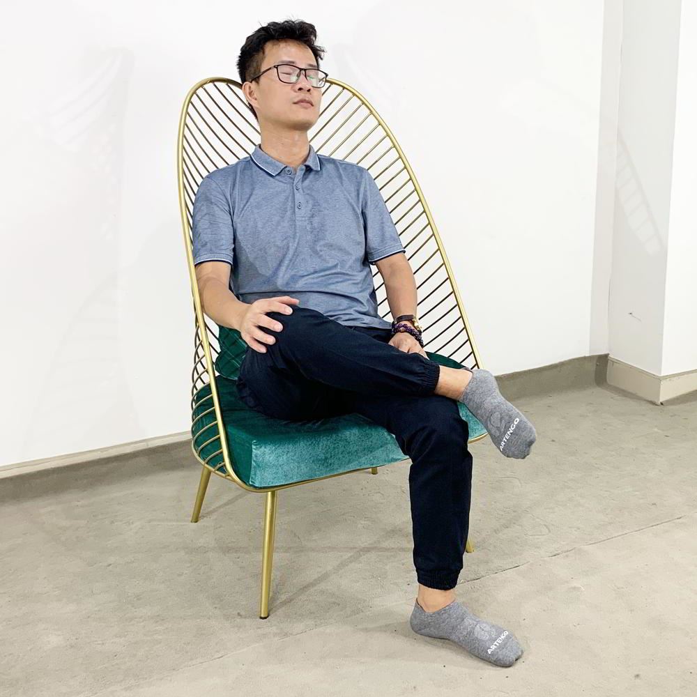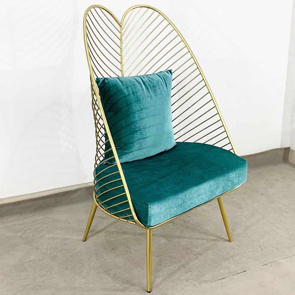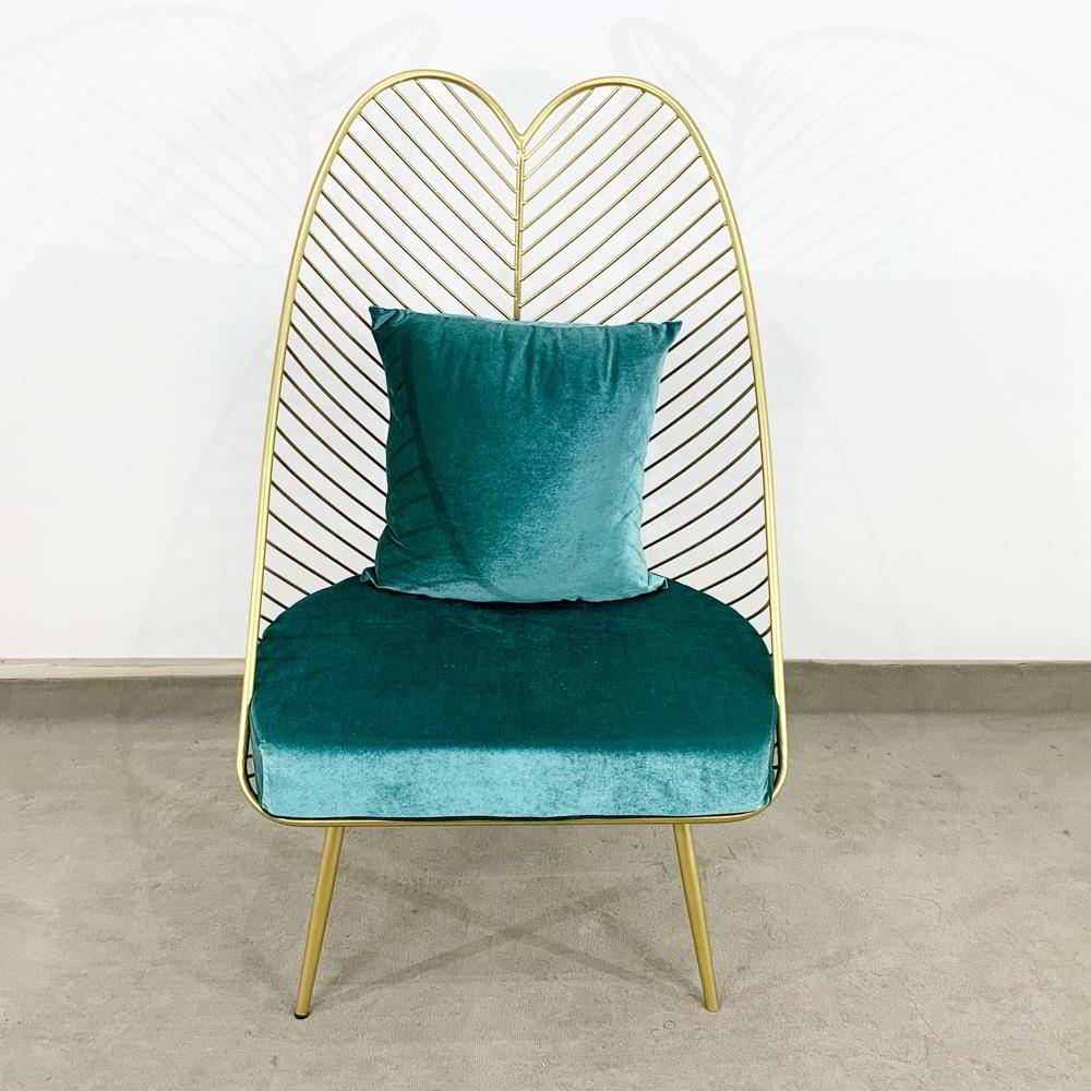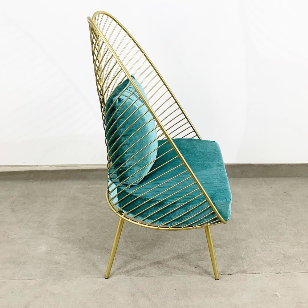 Ghế đọc sách, thư giãn khung màu vàng đồng có nệm ghế màu xanh đẹp mắt