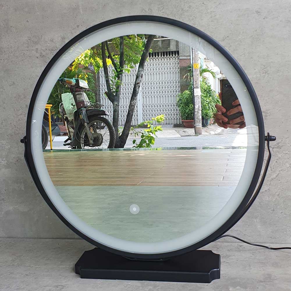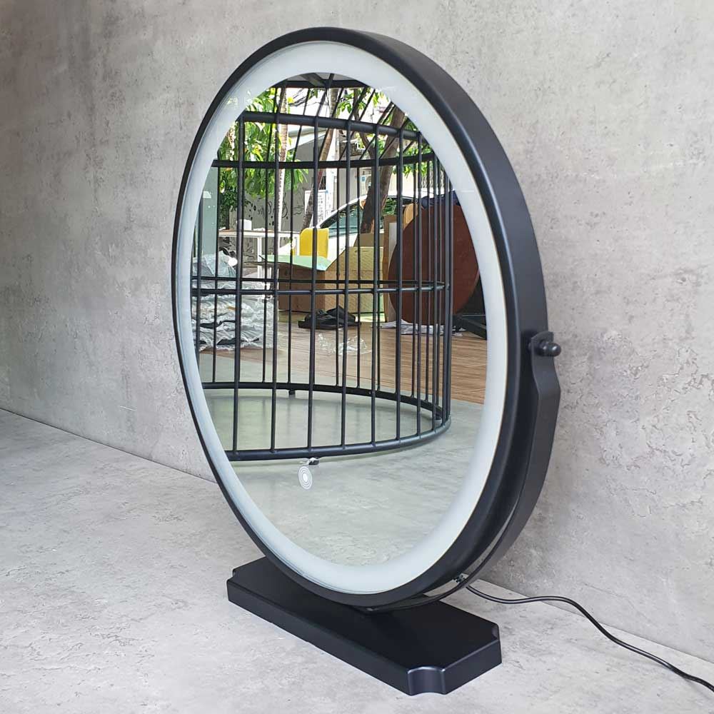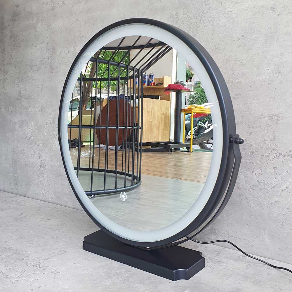 Gương trang điểm GNG014 được trang bị thêm đèn led ẩn dưới gương mang lại tính thẩm mỹ cao cho không gian sống. Gương có khả năng xoay 180 độ, với 3 chế độ đèn cảm ứng, màu vàng - màu trắng - màu trắng vàng. Chất liệu sử dụng là khung sắt kim loại sơn tĩnh điện, đảm bảo tính thẩm mỹ cao, giúp chống gỉ sét và có độ bền bỉ cao.