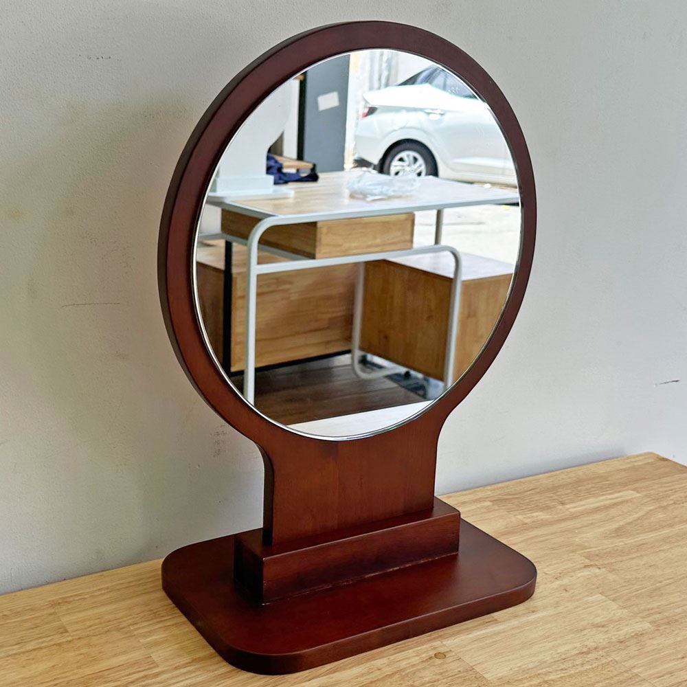 Gương trang điểm gỗ GNG006 sử chất liệu chính là gỗ cao su ghép, đạt tiêu chuẩn xuất khẩu AA. Bề mặt gỗ đã được xử lý bằng sơn PU chống thấm. Ngoài ra, bạn có thể lựa chọn 5 màu khác tùy thích, phù hợp với nhiều không gian và phong cách mà cá nhân đang hướng tới.