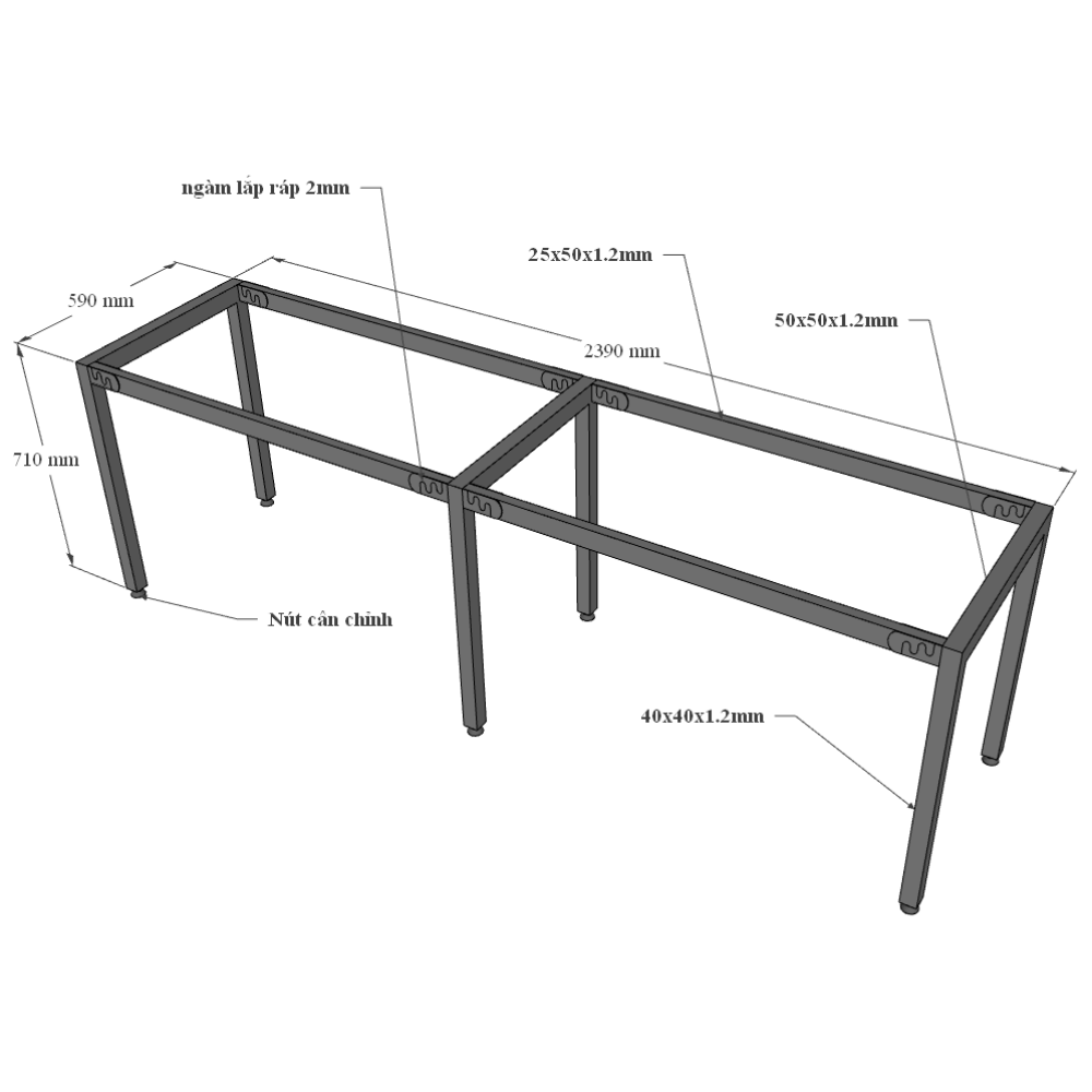 Chân bàn sử dụng sắt hộp 40x40mm và sắt hộp 25x50mm dày 1.2mm rất bền chắc thêm sơn tĩnh điện chất lượng cao cho hệ bàn cao cấp sử dụng thời gian rất dài