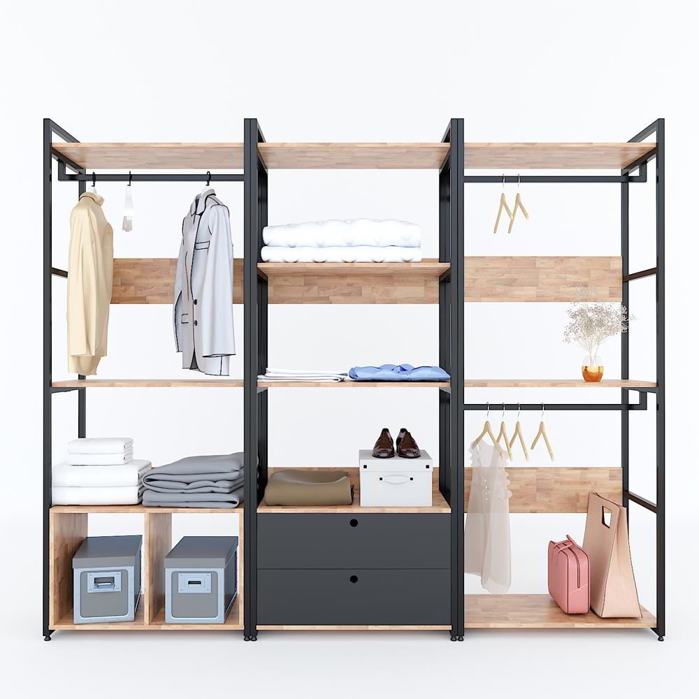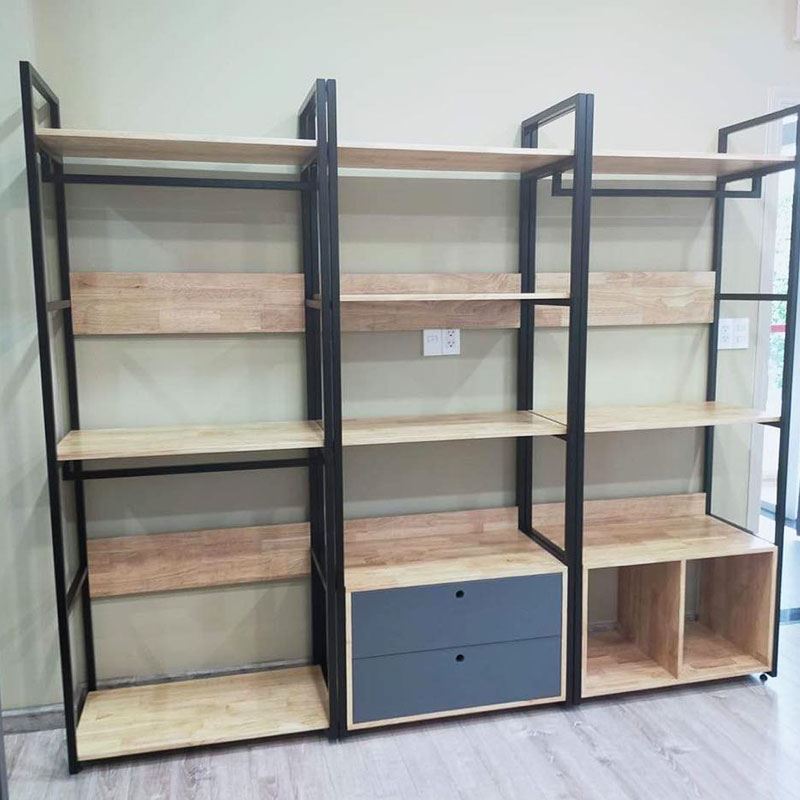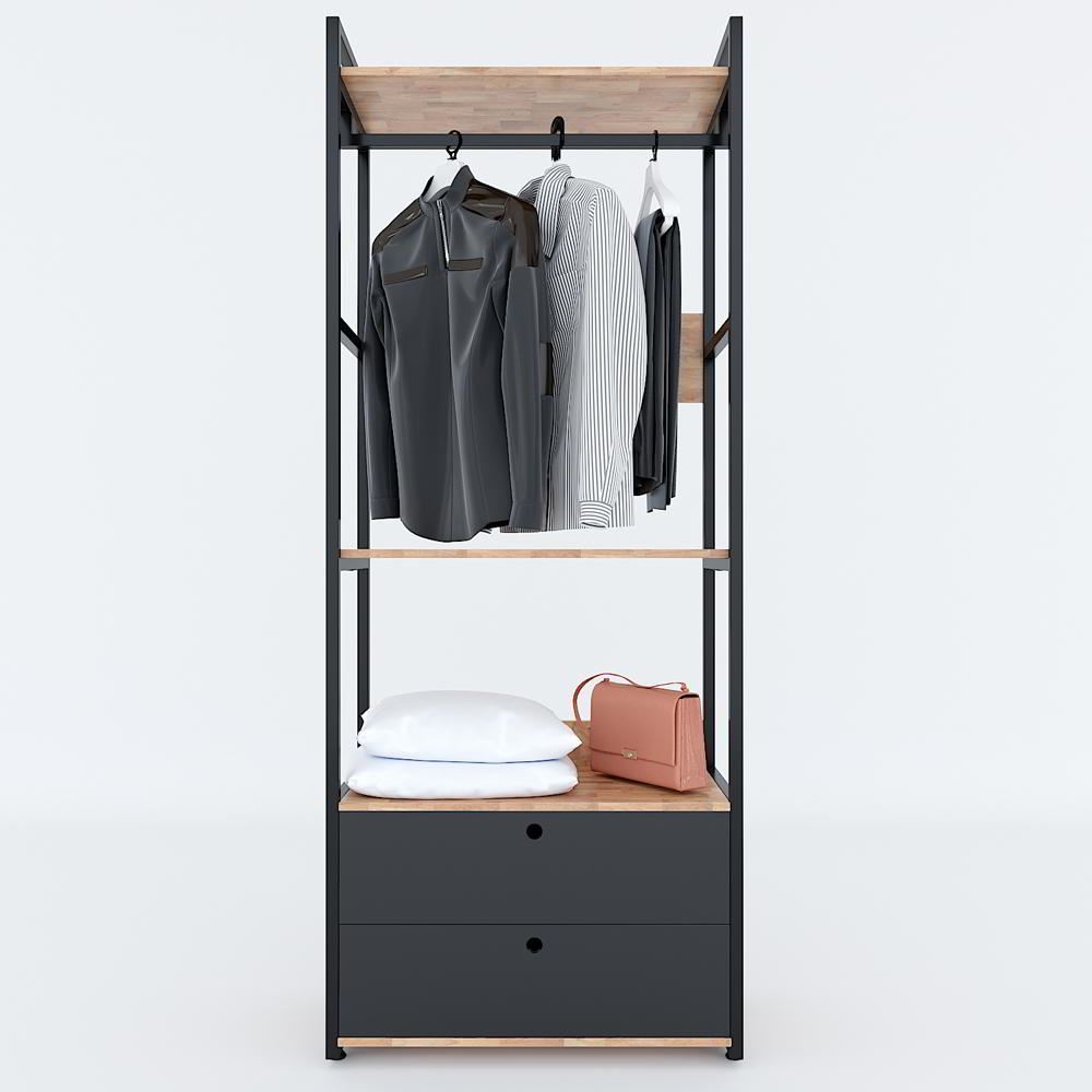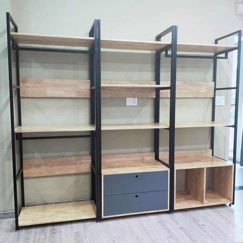 KQA68041 - Kệ quần áo VEGA 4 tầng có hộc tủ 80x45x200(cm) với thiết kế nhiều tầng có thêm 2 hộc tủ đa năng, giúp bạn trưng bày được nhiều sản phẩm và tiết kiệm tối đa diện tích phòng.Một trong những ưu điểm nổi bật nhất của thiết kế gỗ khung sắt đó là sự phù hợp với không gian nhà hay cửa hàng. Chủ nhà không cần phải lo lắng nhiều về việc chọn lựa thiết kế tủ theo phong cách thiết kế tổng thể của căn nhà, hay cửa hàng.