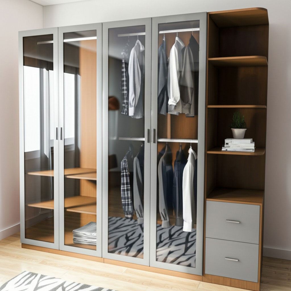 Hệ tủ quần áo TQA68049 được thiết kế với kiểu dáng tối giản, hiện đại, lược bỏ chi tiết rườm rà, phù hợp với mọi phong cách nội thất hiện đại, cho tới Scandinavian. Cánh cửa sử dụng loại kính trong suốt không chỉ tăng thêm vẻ sang trọng mà còn giúp bạn dễ dàng tìm thấy món đồ mình cần.