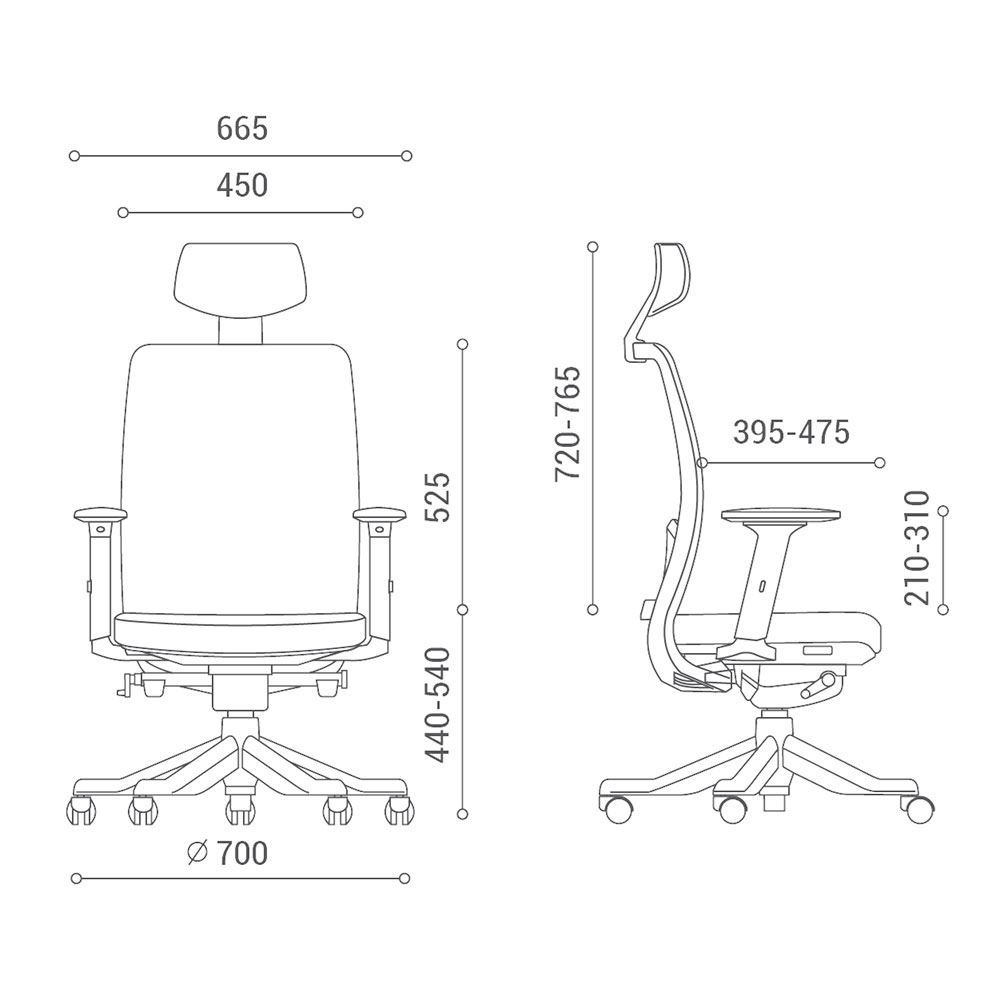 Kích thước chi tiết ghế văn phòng chân xoay có tựa đầu HOGVP072