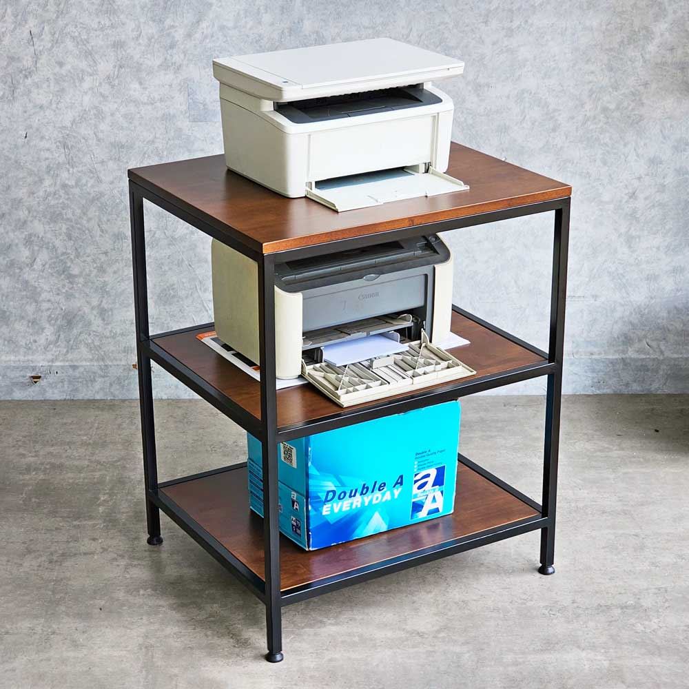 Kệ có 3 tầng giúp bạn dễ dàng sắp xếp máy in, máy fax và các vật dụng văn phòng khác một cách khoa học và ngăn nắp