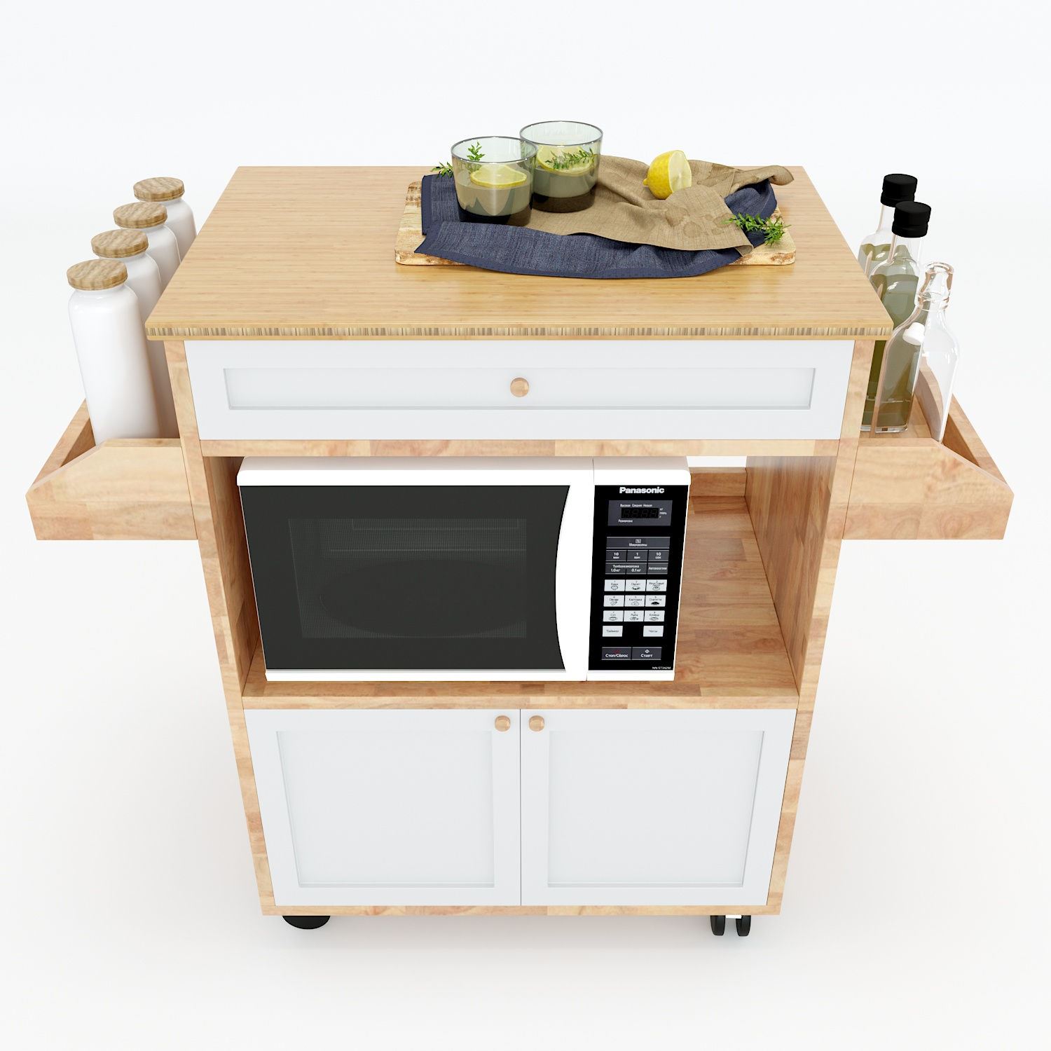 KB68011 - Kệ bếp di động đa năng KISPLA mặt gỗ tre (90x40x80cm) với thiết kế nhỏ nhắn và hiện đại cùng điểm nhấn mặt trên bằng gỗ tre ép 3 lớp dày 18mm siêu cứng và đẹp mắt kết hợp với gỗ cao su tiêu chuẩn AA dày 17mm sơn Pu hoàn thiện với hai màu chủ đạokết hợp với hệ hộc kéo và cửa sơn trắng. Kệ bếp di động Kispla với hai khay hai bên để gia vị hay các chai lọ rất tiện lợi, hệ với bánh xe chất lượng cao dễ dàng di chuyển với hệ hộc kéo phía trên và tủ phía dưới cùng kệ giữa trống giúp đa dạng mục đích sử dụng.
