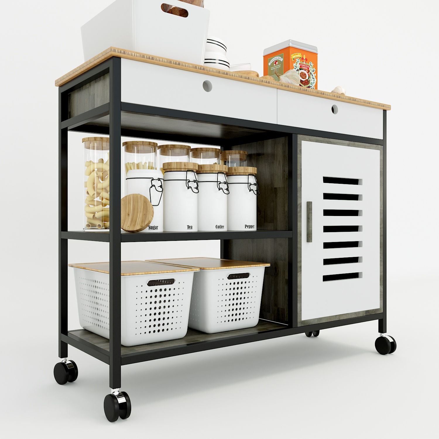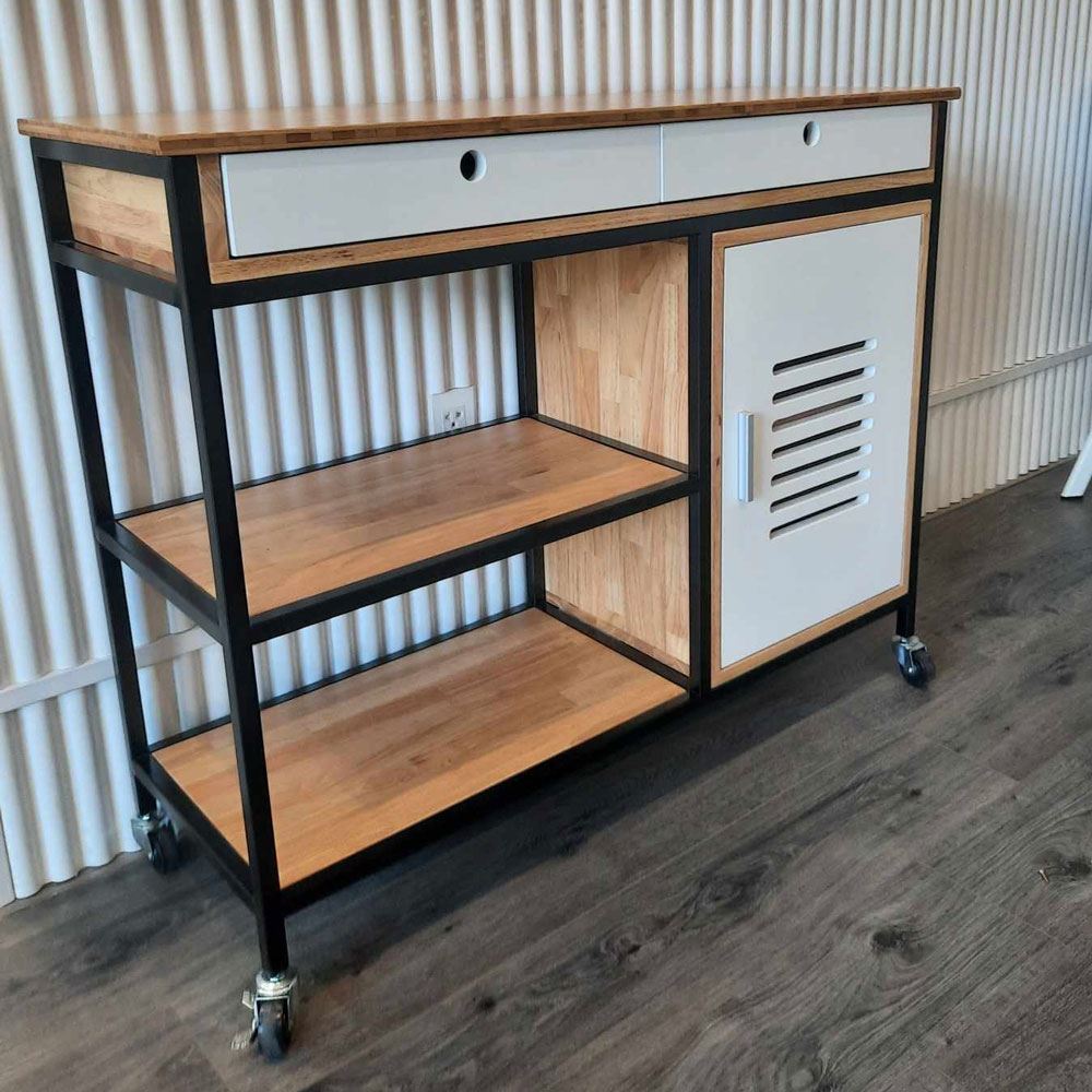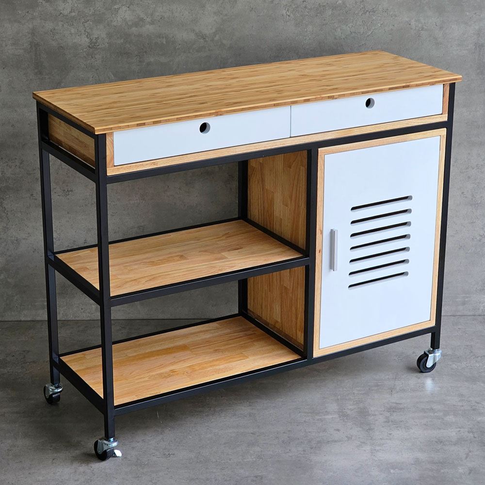 Kệ bếp di động đa năng THONET khung sắt mặt gỗ tre ( 100x36x80cm) KB68013 với hệ khung sắt hàn cố định chắc chắn kết hợp với gỗ cao su tiêu chuẩn AA dày 17mm sơn PU hoàn thiện màu sắc đẹp, mặt trên gỗ tre ép tấm dày 18mm siêu cứng màu sắc đẹp cùng với thiết kế kết hợp giữa hộc kéo, cửa tủ và hệ kệ trống rất tiện lợi với bánh xe xoayu 360 độ dễ dàng di chuyển.