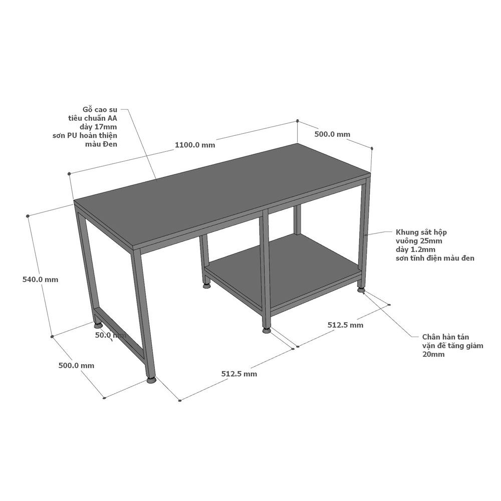 • Khung chân sắt hộp 20x20mm, loại dày 1.2mm, sơn tĩnh điện