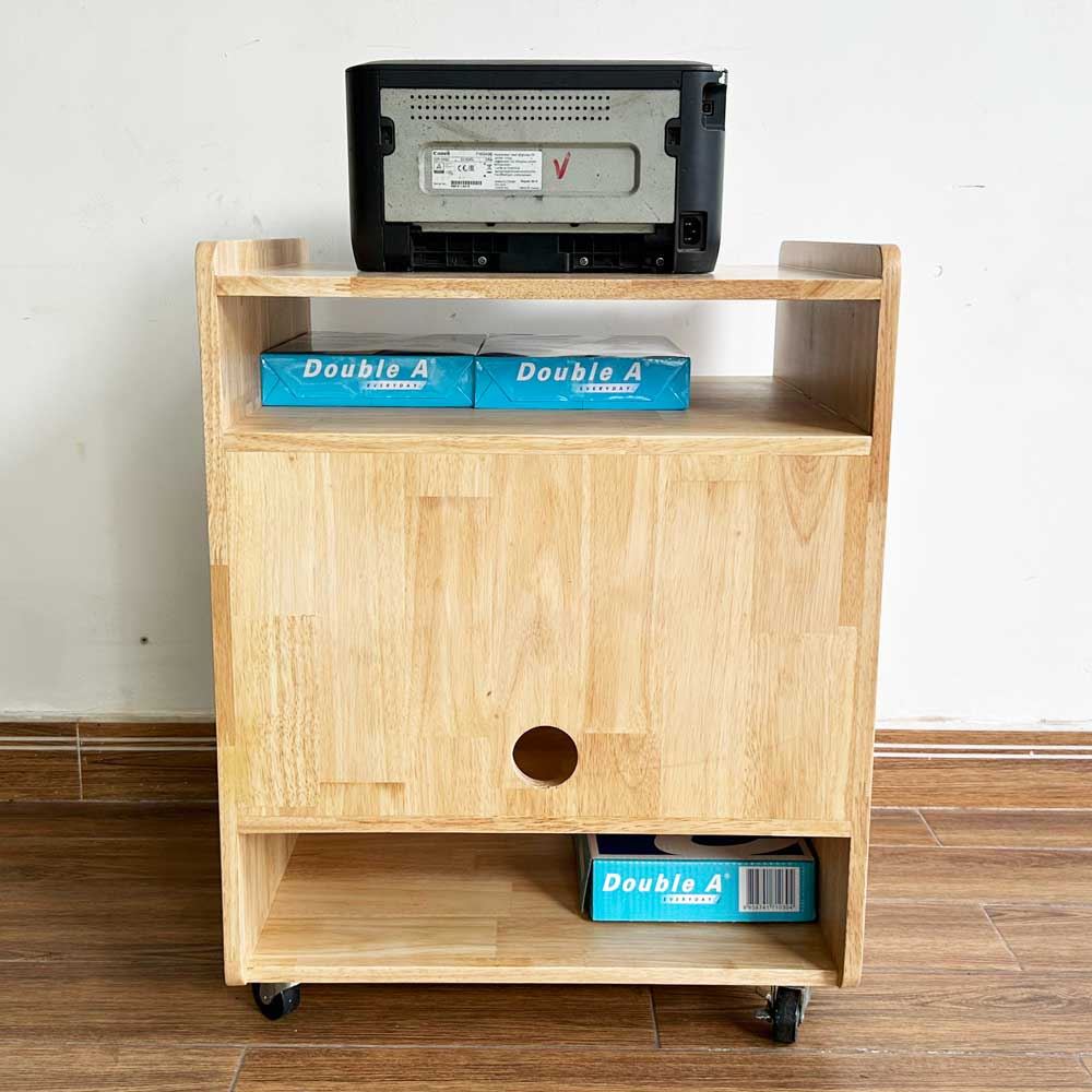 Kệ di động để máy in gỗ tự nhiên TCN68039 là mẫu tủ, kệ được thiết kế 2 tầng để máy in, máy fax và 2 hộc đựng giấy tiện lợi phù hợp với mọi không gian làm việc từ văn phòng đến nhà ở. Với chất liệu chính được sử dụng là gỗ cao su AA chuẩn xuất khẩu, đã được xử lý chống cong vênh, bề mặt được sơn phủ PU chống thấm nước rất dễ làu chùi dọn dẹp, có màu sắc tự nhiên đẹp mắt. Bên cạnh đó, tủ trang bị bánh xe có khoá dễ dàng di chuyển khi cần rất tiện lợi.