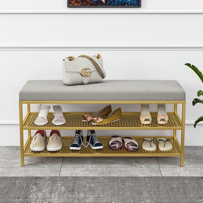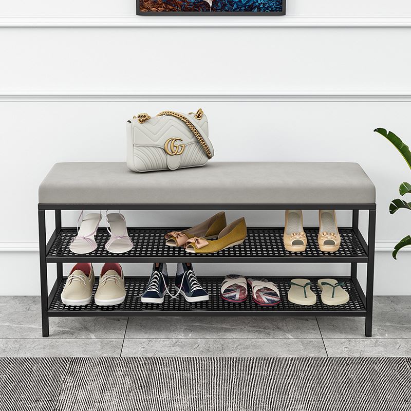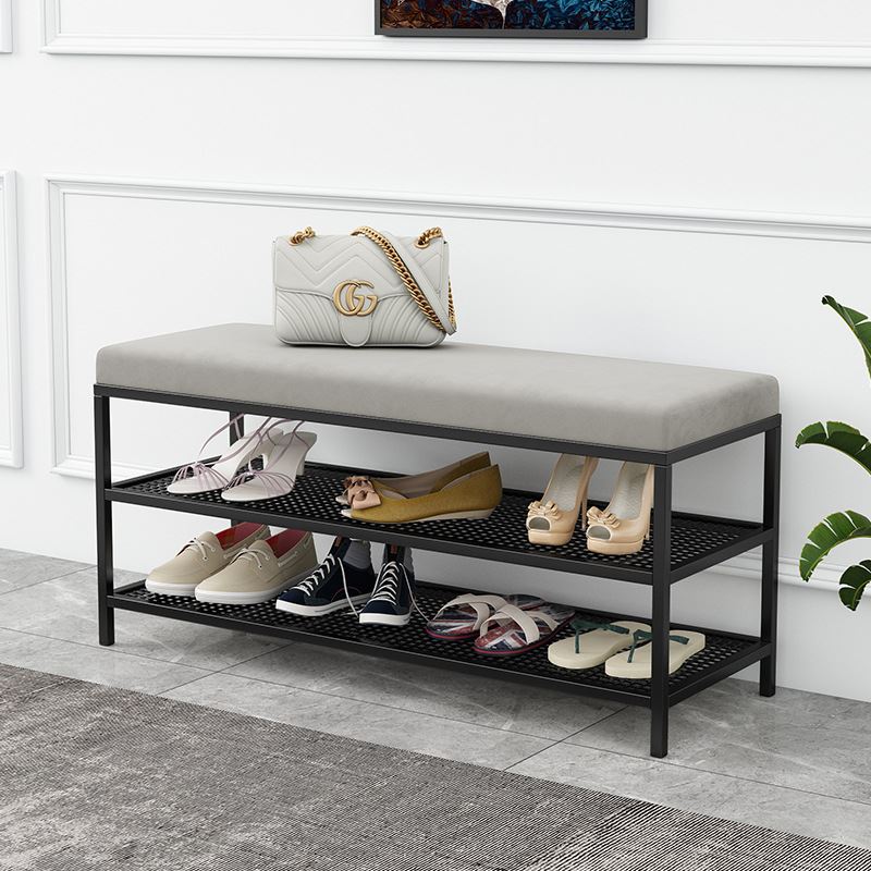 Kệ giày 2 tầng khung sắt có nệm ngồi