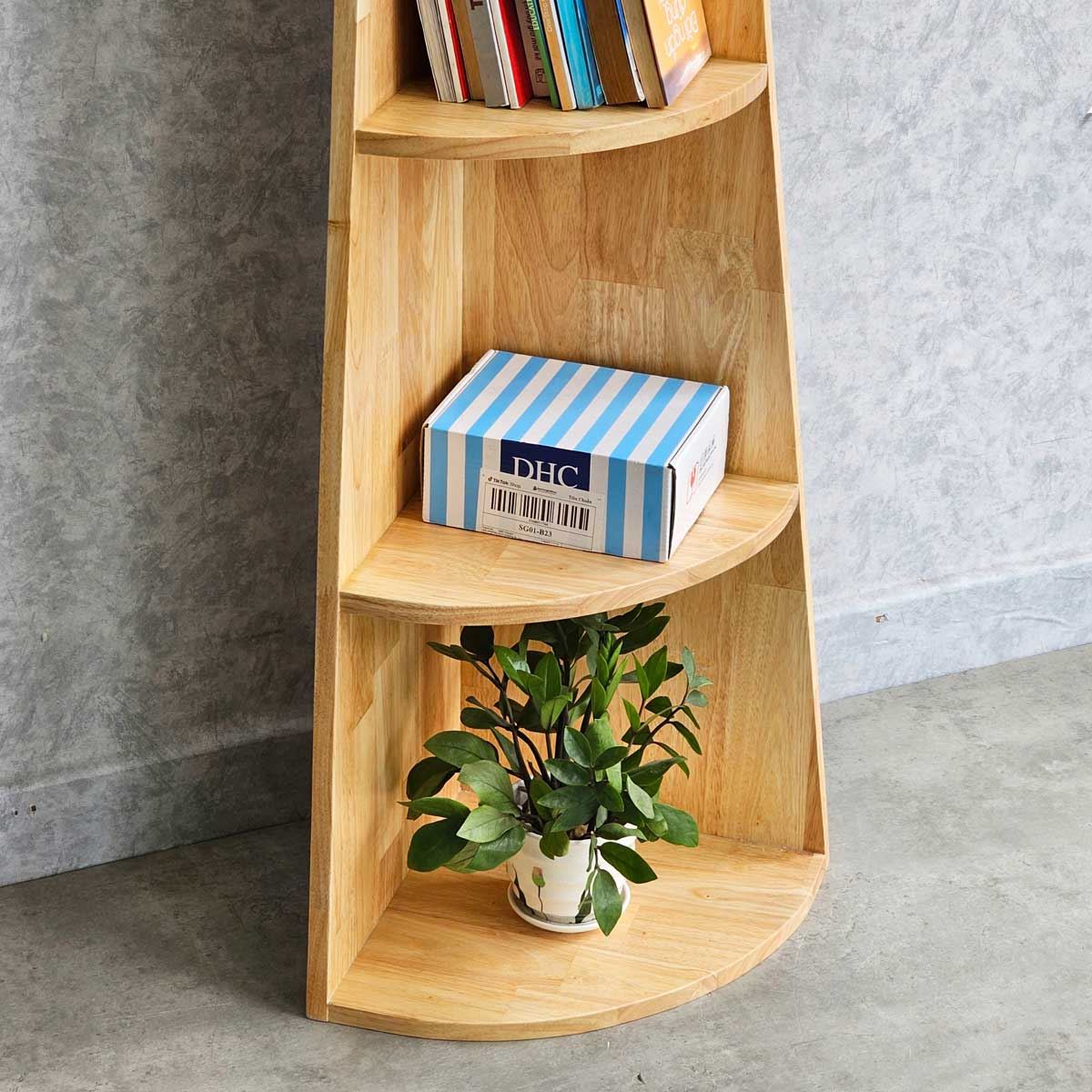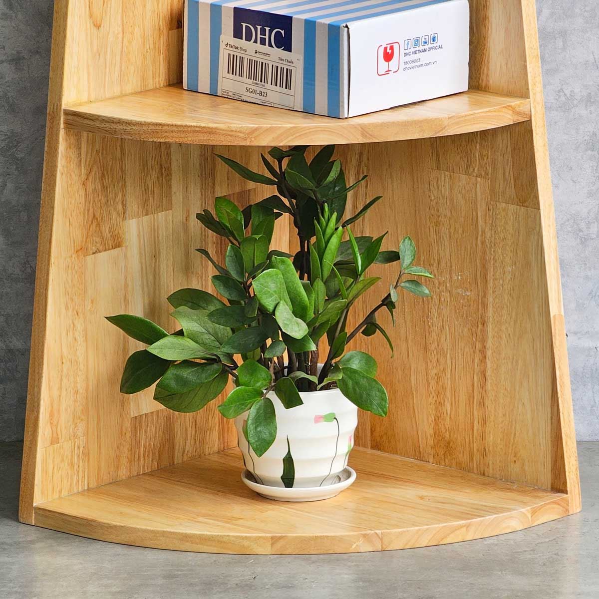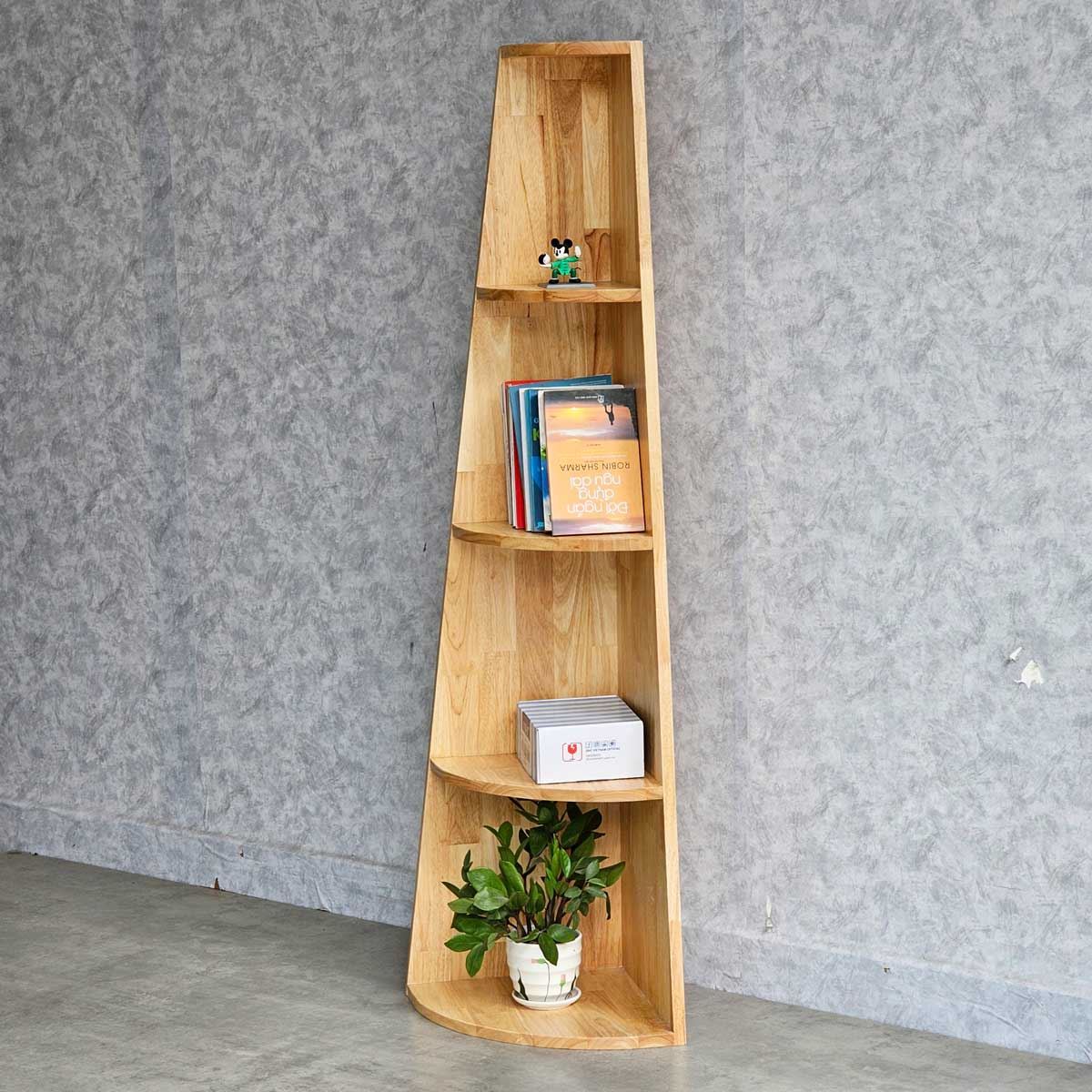 Kệ góc tường được làm từ gỗ cao su AA, tiêu chuẩn xuất khẩu, được xử lý chàm nhám mịn màng, phủ chống thấm nước, giúp tăng độ bền và đảm bảo tính thẩm mỹ cao. Gỗ cao su là loại gỗ tự nhiên có độ bền cao, khả năng chịu lực tốt và vân gỗ tươi sáng và đẹp mắt, giúp mang lại vẻ đẹp mộc mạc và gần gũi cho không gian sống.