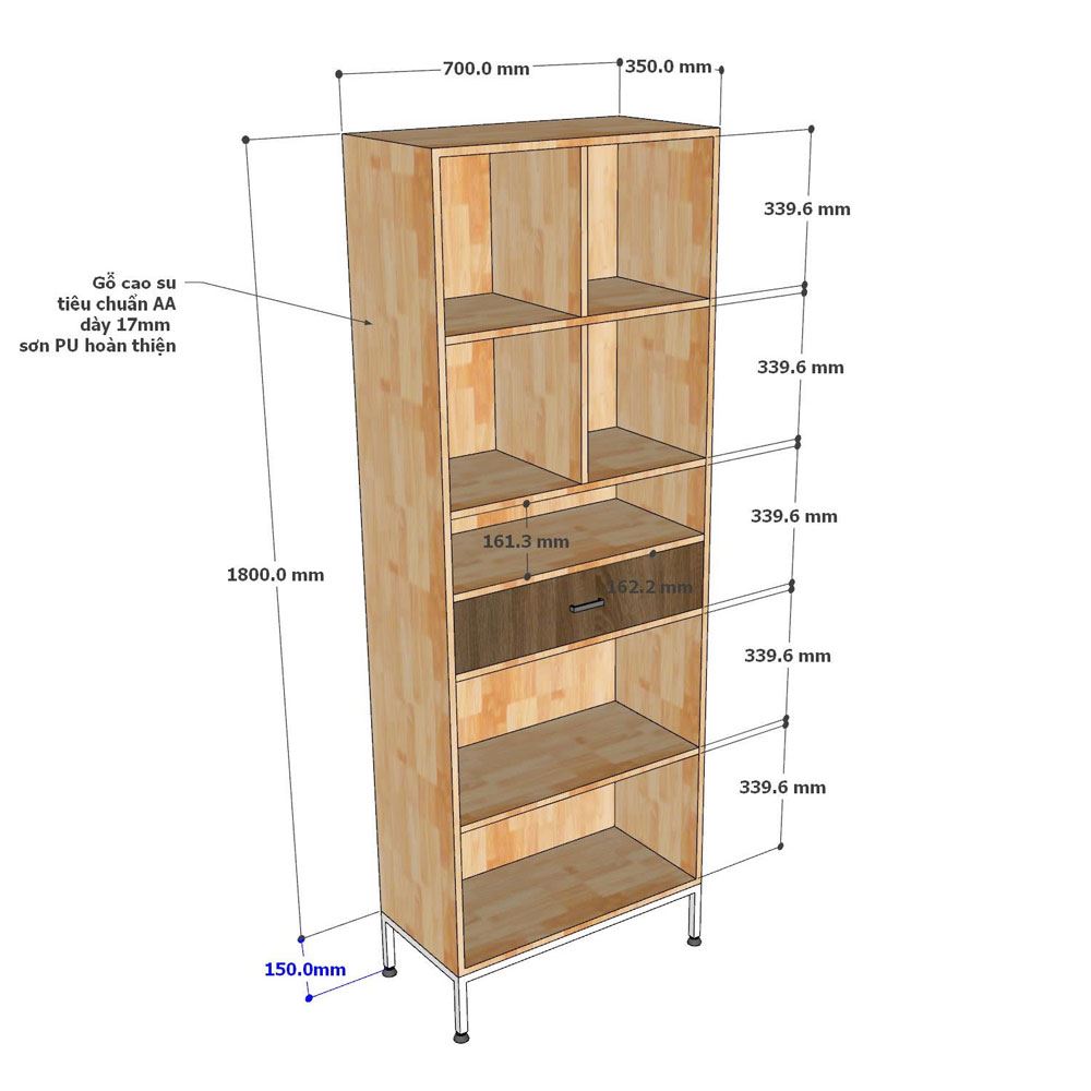 Kệ hồ sơ có ngăn kéo 70x35x195cm gỗ cao su THS68082