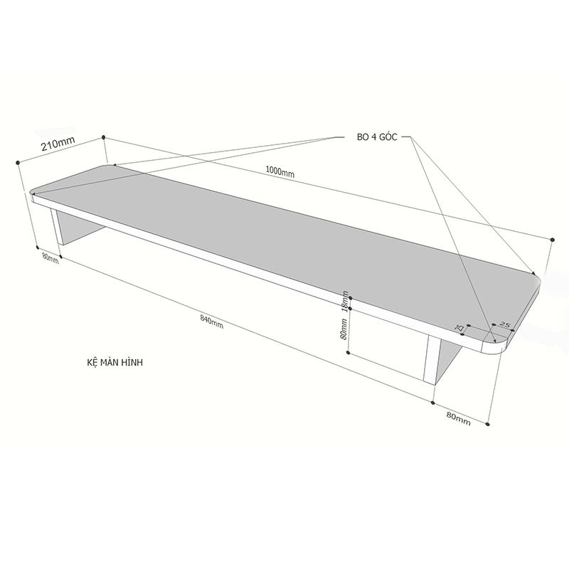 Kệ màn hình bo góc 1m gỗ cao su màu tự nhiên