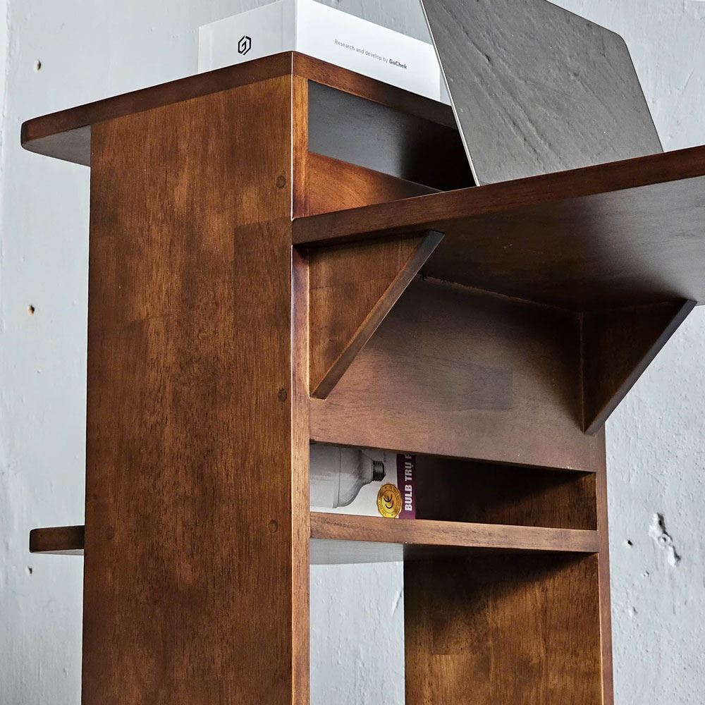 Chất liệu gỗ cao su AA không chỉ mang đến vẻ đẹp sang trọng, ấm áp mà còn sở hữu độ cứng cáp, đảm bảo kệ có thể chịu được trọng lượng các thiết bị