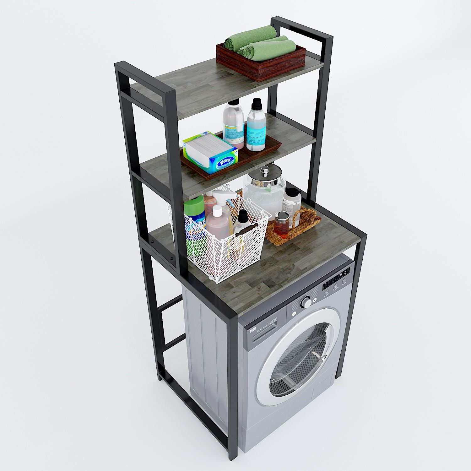 Kệ máy giặt 3 tầng gỗ Cao Su khung sắt