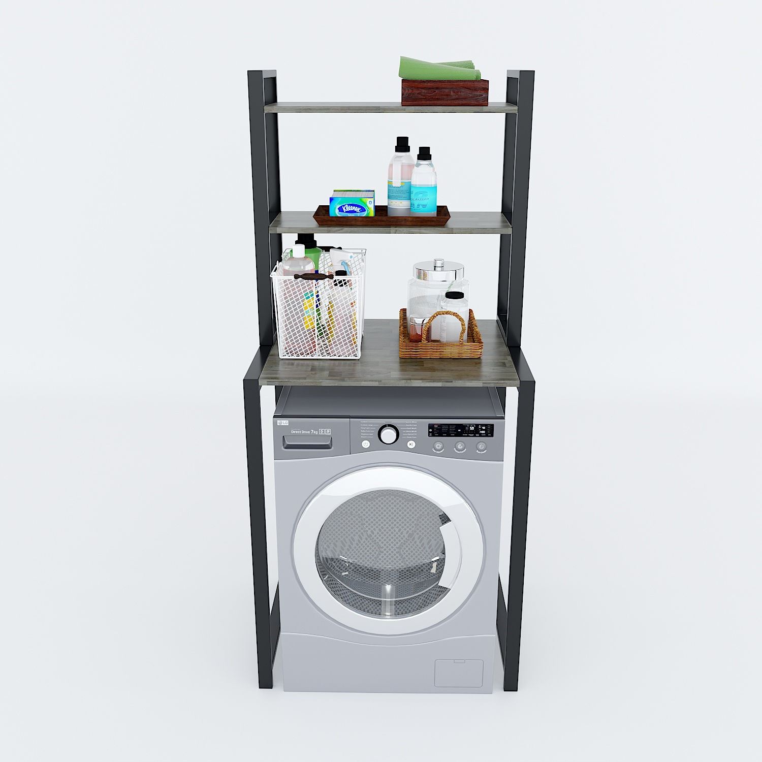 Điểm nổi bật của kệ máy giặt chính là sự đa năng. Không chỉ là nơi đặt máy giặt, kệ còn được trang bị thêm các tầng kệ để sắp xếp gọn gàng các vật dụng giặt giũ như nước giặt, nước xả, bột giặt, giỏ đựng quần áo,... Bên cạnh đó, với phần khung sắt có thể tháo lắp nên sẽ rất dễ dàng vận chuyển lắp đặt, giúp bạn tiết kiệm được rất nhiều thời gian vào công sức.