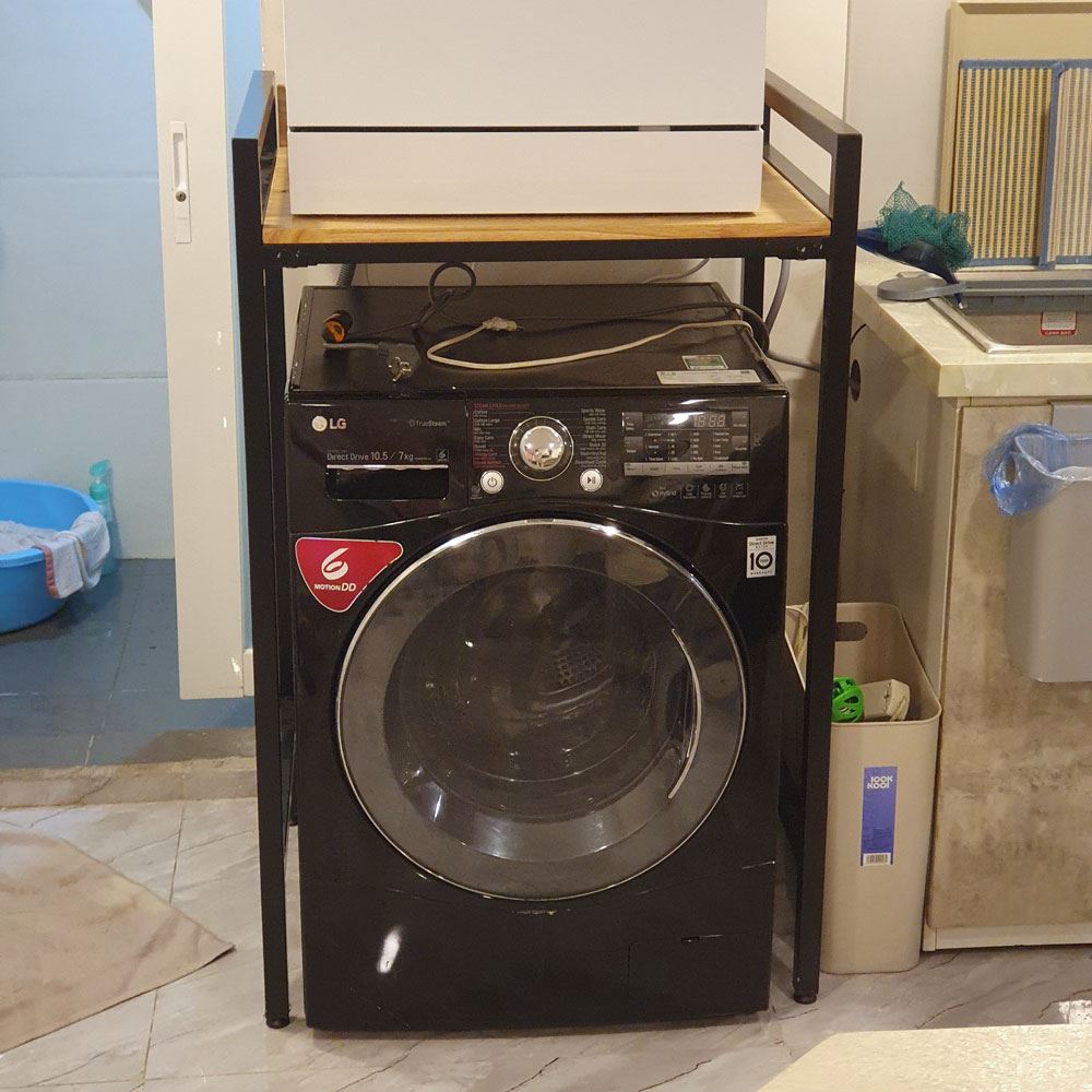 Kệ máy giặt đơn giản gỗ cao su khung sắt lắp ráp