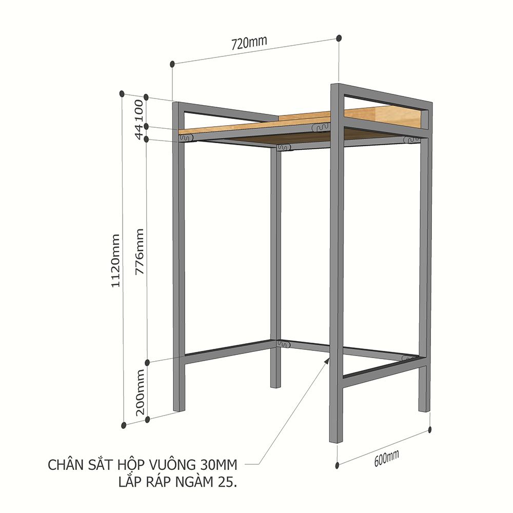 Chất liệu được sử dụng là gỗ cao su AA đạt chuẩn xuất khẩu, với bề mặt gỗ sáng mịn và tươi tắn, được xử lý 4 lớp sơn PU chống thấm nước, giúp tăng độ bền và tính thẩm mỹ. Khung kệ được phủ lớp sơn tĩnh điện giúp bảo vệ khung kệ khỏi gỉ sét, ăn mòn, trầy xước và các tác động từ môi trường bên ngoài. Khung kệ sơn tĩnh điện có thể sử dụng lâu dài trong nhiều năm mà không cần bảo dưỡng nhiều.