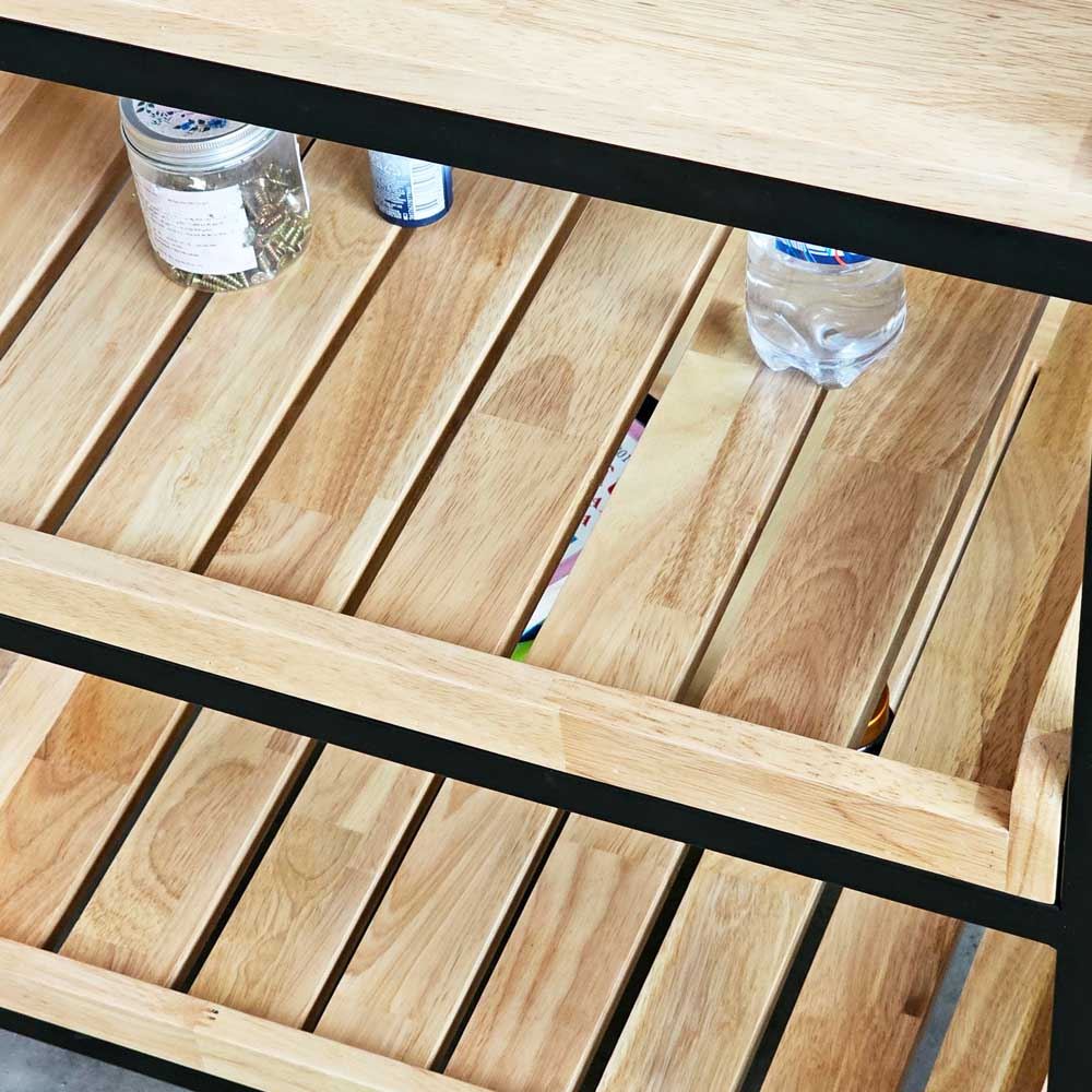 Mặt kệ được làm bằng gỗ cao su AA, chuẩn xuất khẩu, đã qua xử lý chà nhám mịn màng và phủ chống thấm nước. Khung sắt hộp loại dày 1,2 ly có khả năng chịu lực tốt, bề mặt sắt được phủ sơn tĩnh điện chống gỉ sét, giúp đảm bảo tính thẩm mỹ cao và độ bền bỉ cho sản phẩm.
